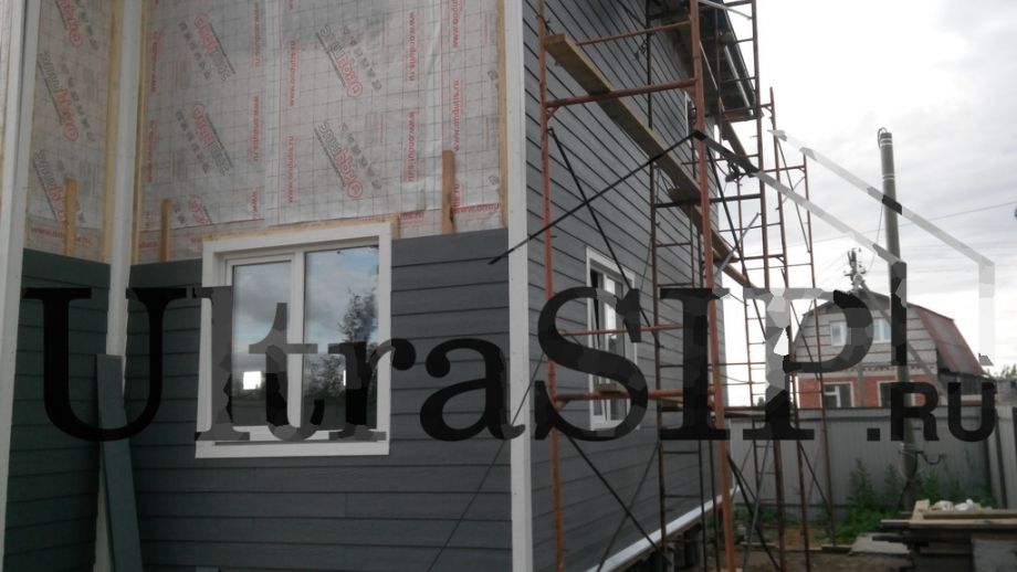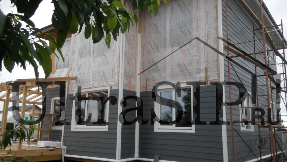 Стены из СИП защищены снаружи паропроницаемой мембраной. Ставим обрешетку, навешиваем фасад из смарт-сайдинга.