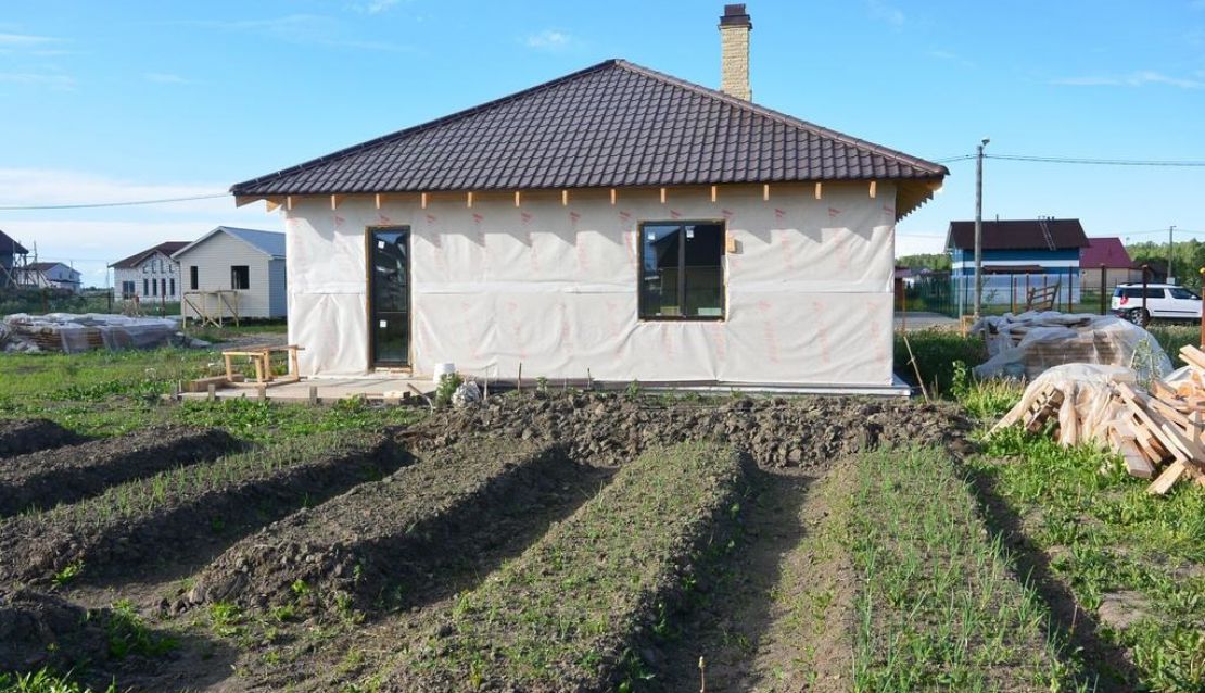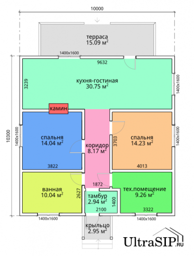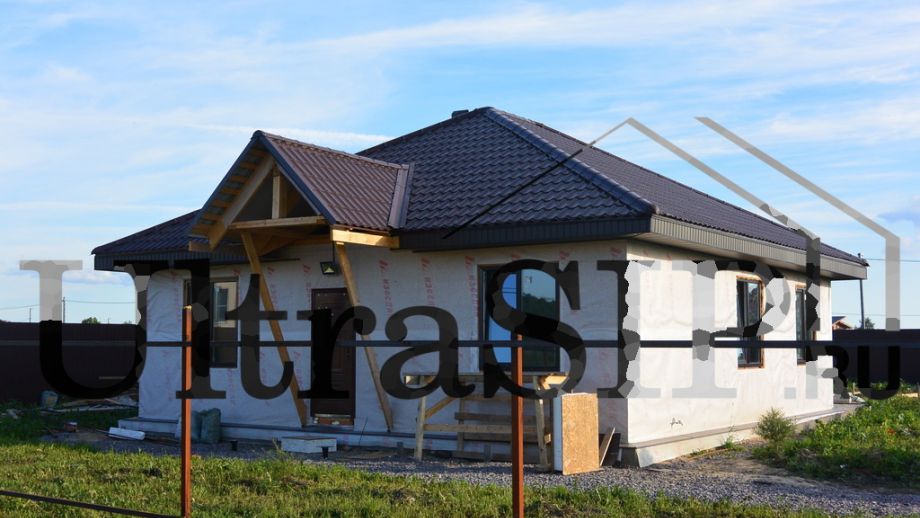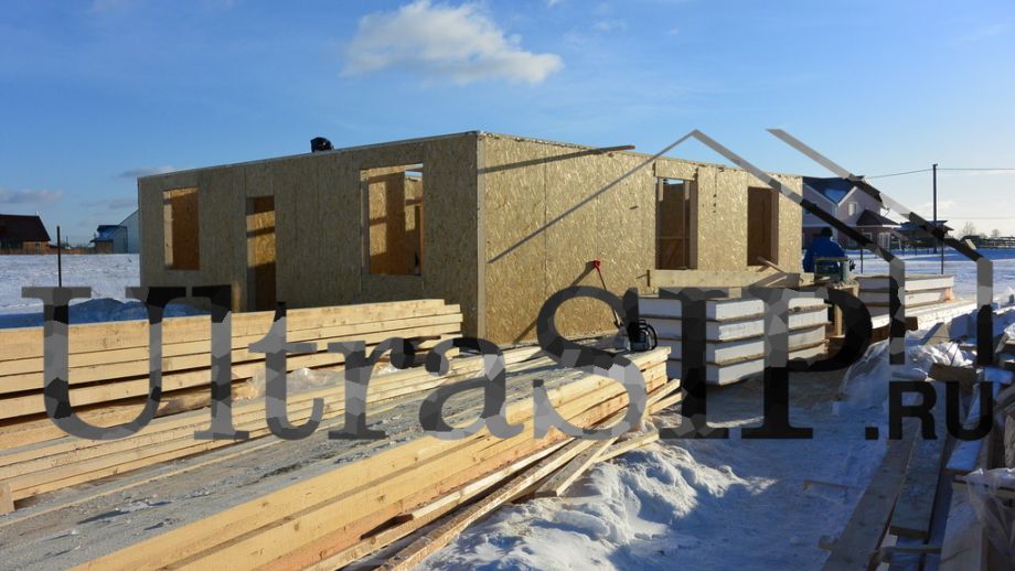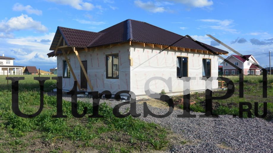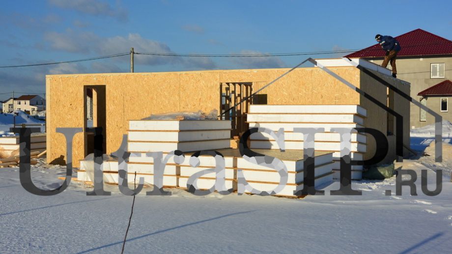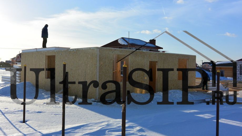 В начале 2015 года мы построили этот одноэтажный дом простой архитектуры. СИП- панели:OSB-3 Калевала 12 мм, пенопласт завода "Новопласт" ПСБ -С25Ф высокой реальной плотности - от 16,7 кг/м3, клей ПУР производства BASF, Германия. Площадь СИП-конструкций 103 м², вместе с крыльцом и террасой - 128 м². В доме две спальни, кухня-гостинная, санузел, техпомещение. Холодный чердак, четырехвальмовая кровля, высота в коньке 6.1 м.