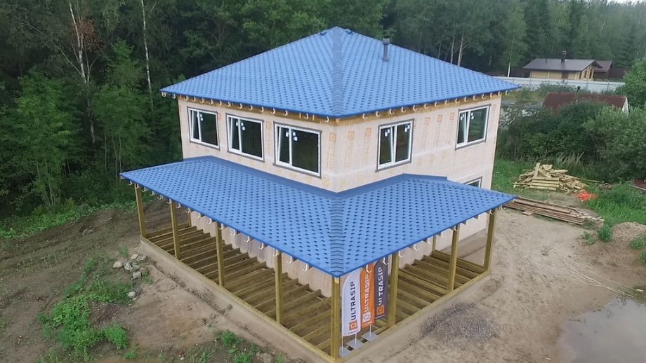 Домокомплект из СИП панелей ULTRASIP® EXTRA (OSB-3 Калевала 12 мм, пенопласт ППС-17 высокой реальной плотности - 17,5 кг/м3).