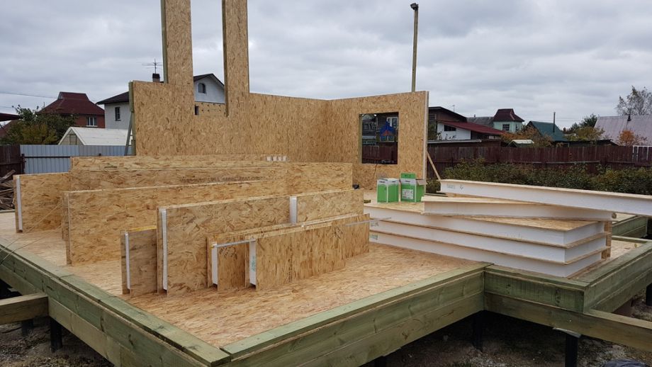 Сваи обвязаны антисептированным брусом 200х200мм. Привезен и выгружен домокомплект из прочных СИП-панелей ULTRASIP® EXTRA с пенополистиролом плотностью 18 кг/м3!