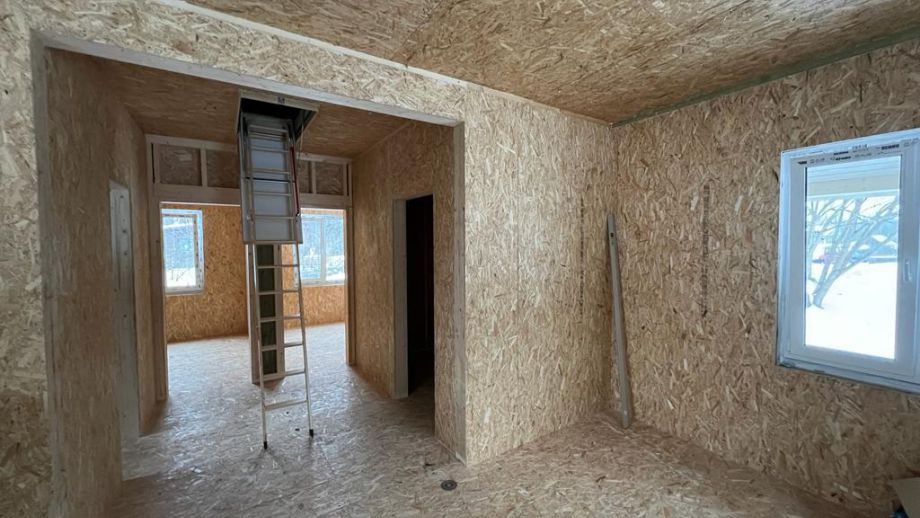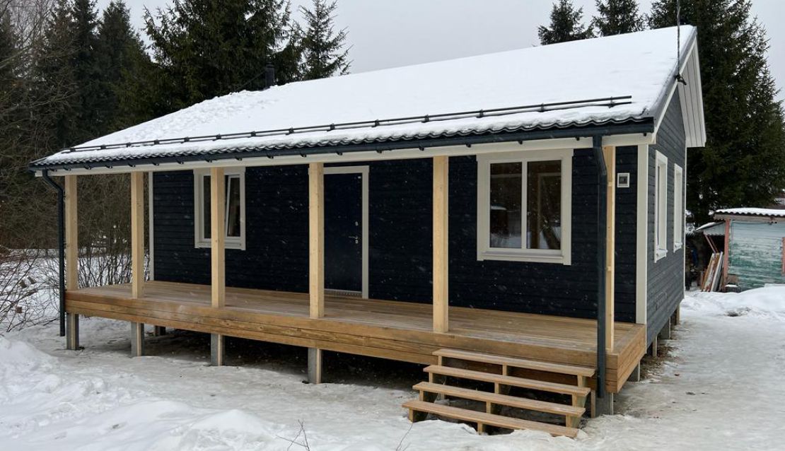 В указанную цену входит полностью готовый внешне дом в комплектации Оптимум - это закрытый теплый контур с фундаментом, фасадом, окнами, вентиляцией, системами снегозадержания и водостока, но без внутренней отделки и инженерных сетей.