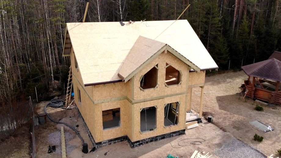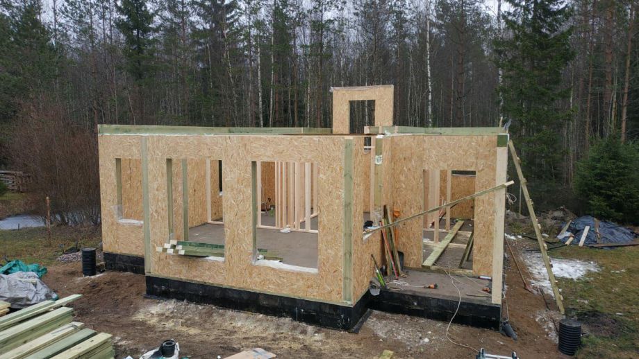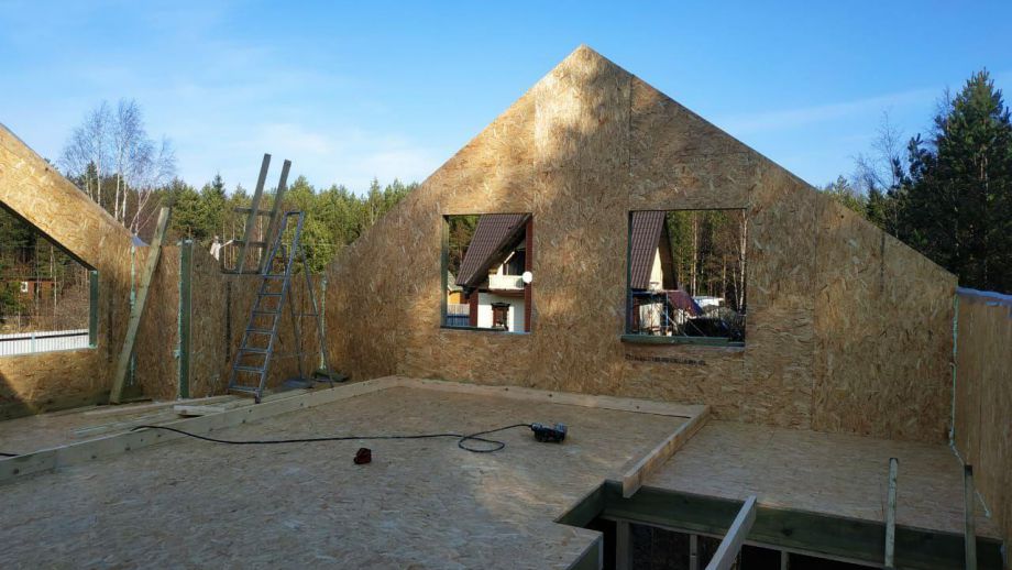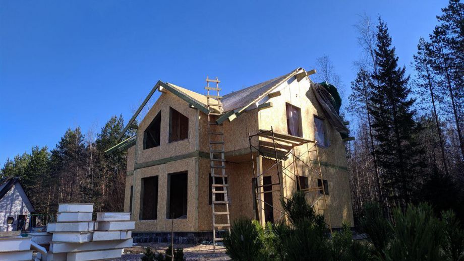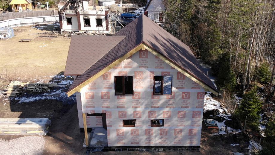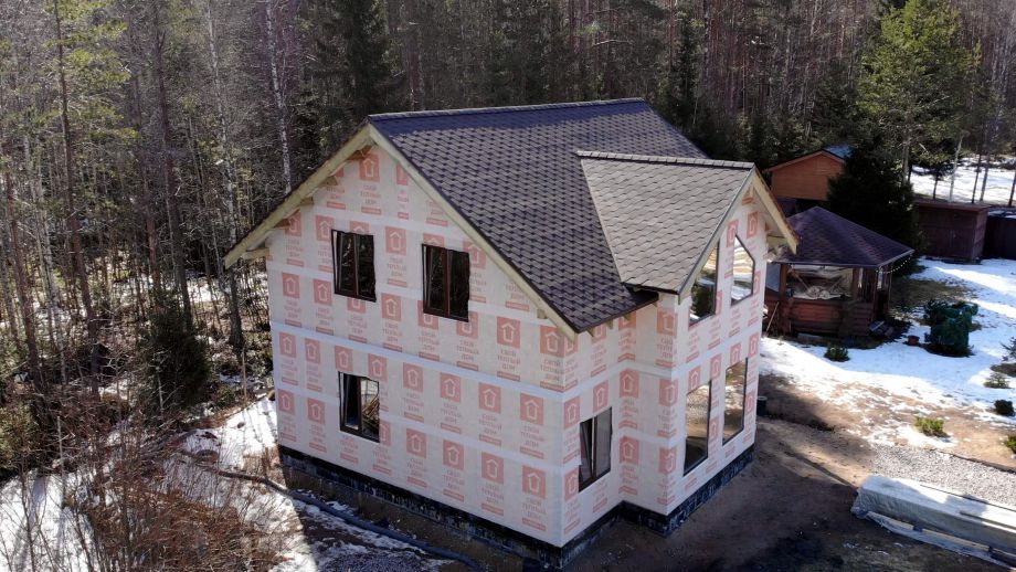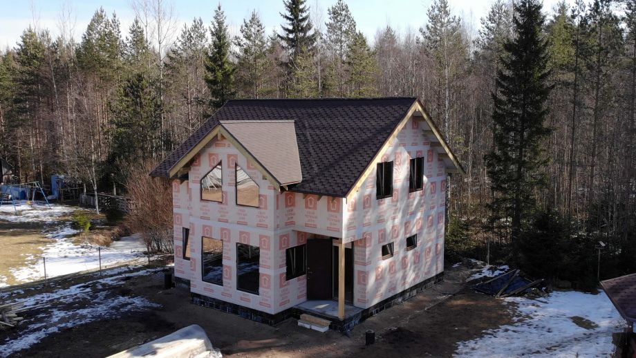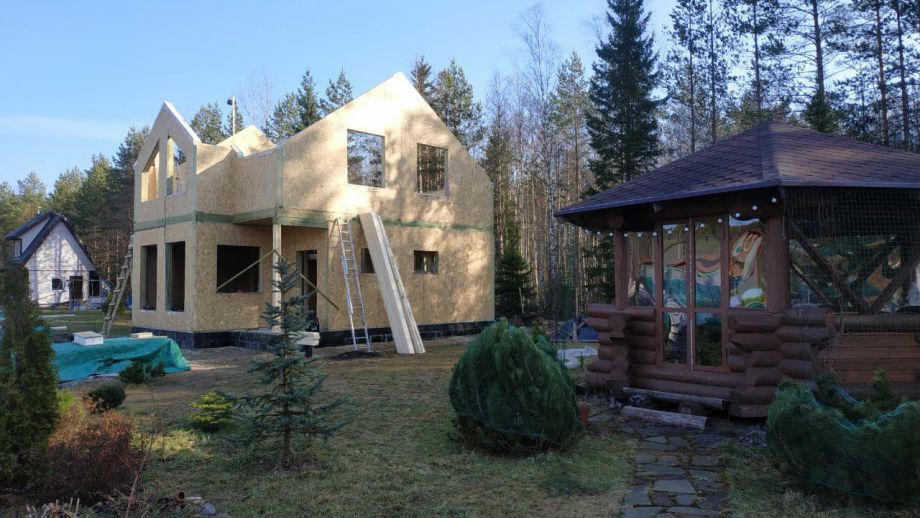 В тихом пригороде Санкт-Петербурга мы приступили к постройке этого красивого и теплого дома с грамотной и лаконичной планировкой. Высота стен первого этажа - 2.8 м., второго, мансардного в коньке - 3,5 метра. Плитный фундамент, на котором возводится дом, предоставлен заказчиком.