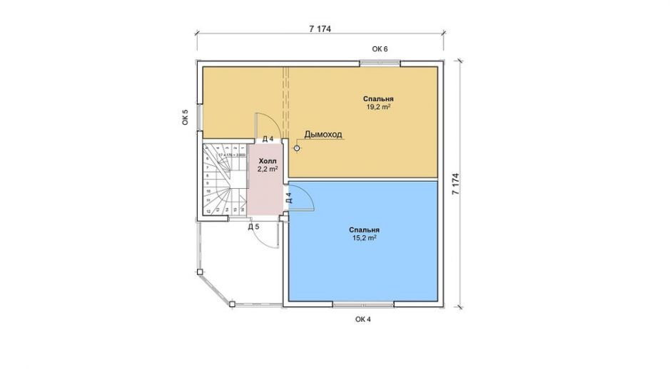 Нулевое и чердачное перекрытия SIP панелей толщиной 224 мм, межэтажное - по каркасной технологии. Наружные стены из СИП-панелей 174 мм. Перегородки внутри - каркасные, обшиты с одной стороны ОСБ 12 мм.