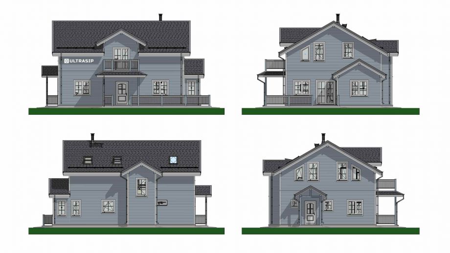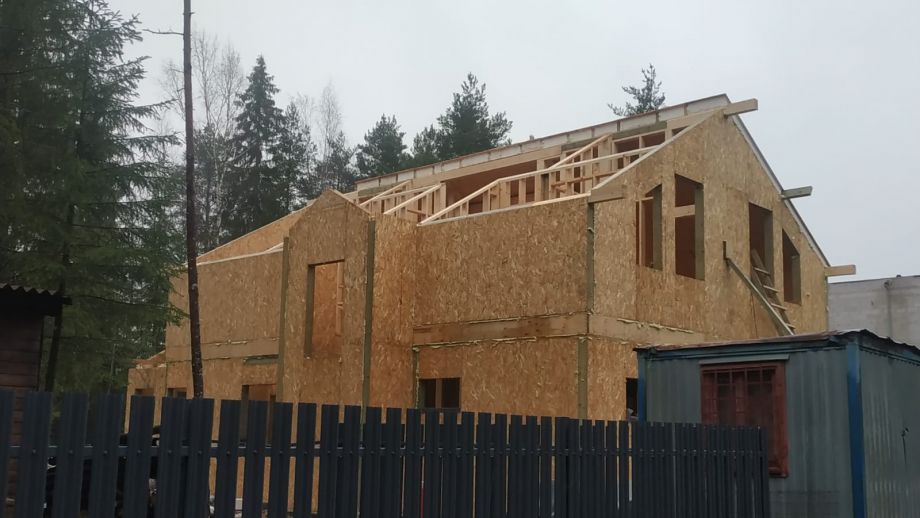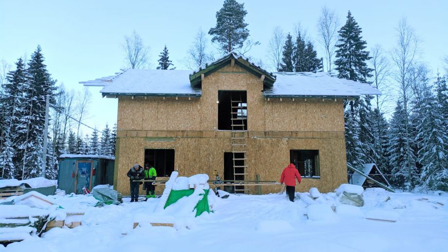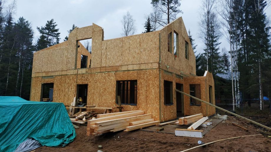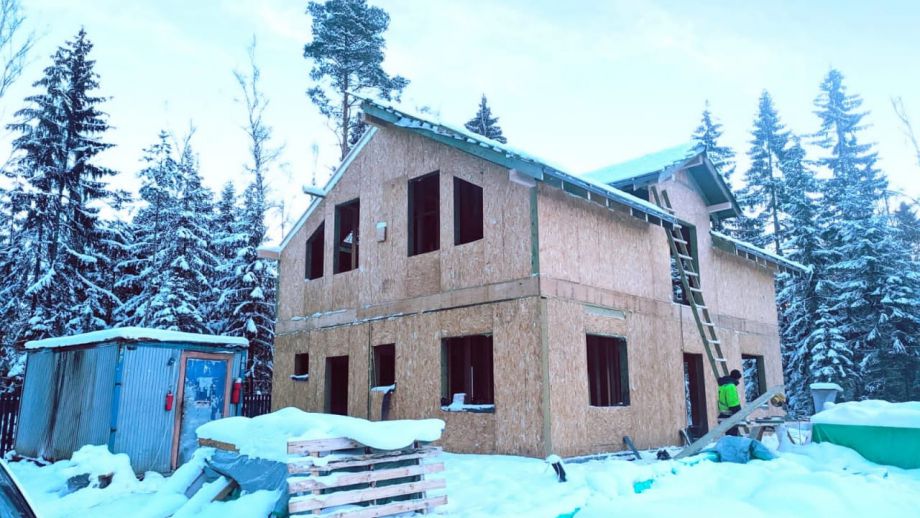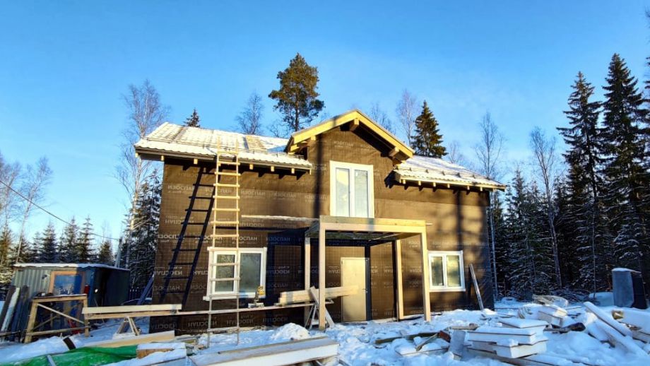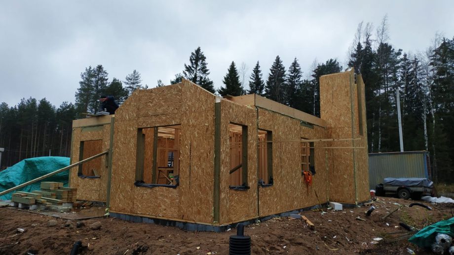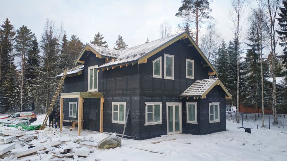 - фасад дома - из скандинавской доски с поднятым ворсом, покрашенной на производстве и смонтированной по всем финским канонам.