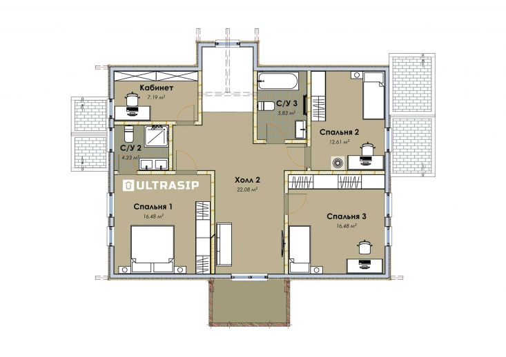 - фундамент дома - современная энергоэффективная Утепленная Шведская Плита (в указанную цену не входит). Ее смонтировало наше фундаментное подразделение ULTRAFUNDAMENT. ;