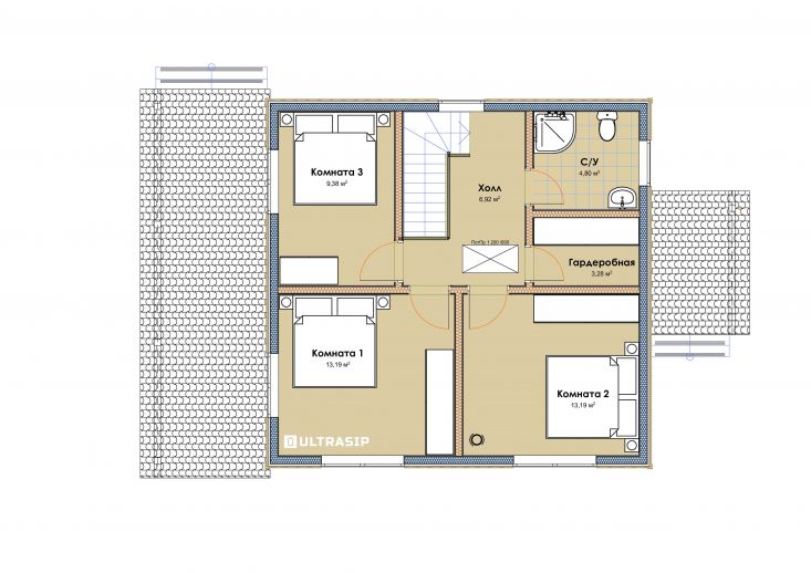 Перед нами стояла задача - втиснуть в узкий длинный участок площадью 4 сотки дом по нашему популярному проекту Оптимум-127.