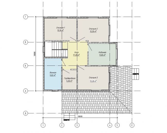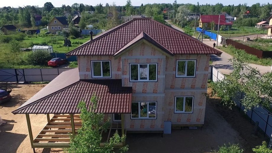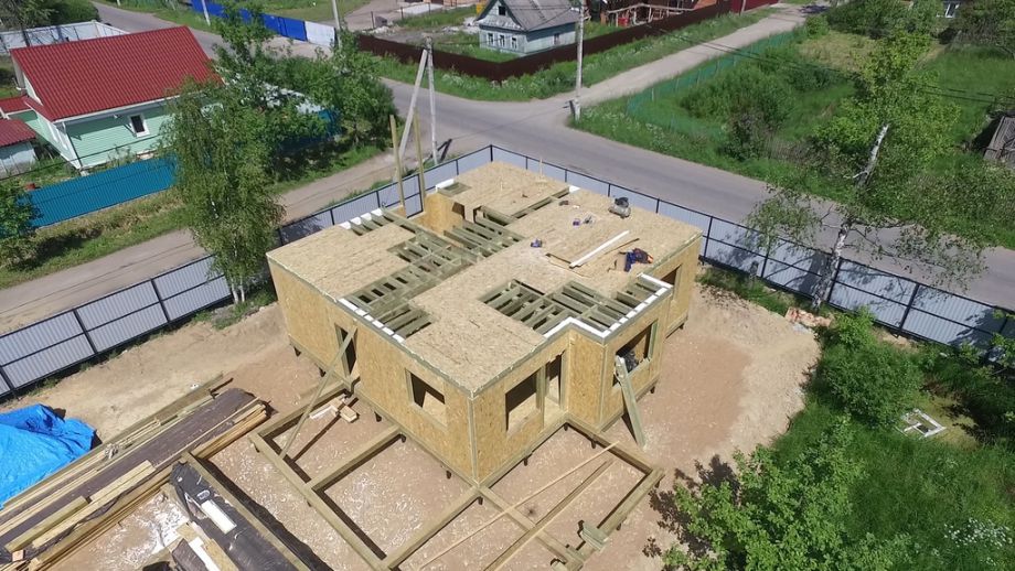 Нулевое и чердачное перекрытия SIP панелей толщиной 224 мм, межэтажное - по каркасной технологии. Наружные стены из СИП-панелей 174 мм. Перегородки внутри - каркасные, обшиты с одной стороны ОСБ 12 мм.