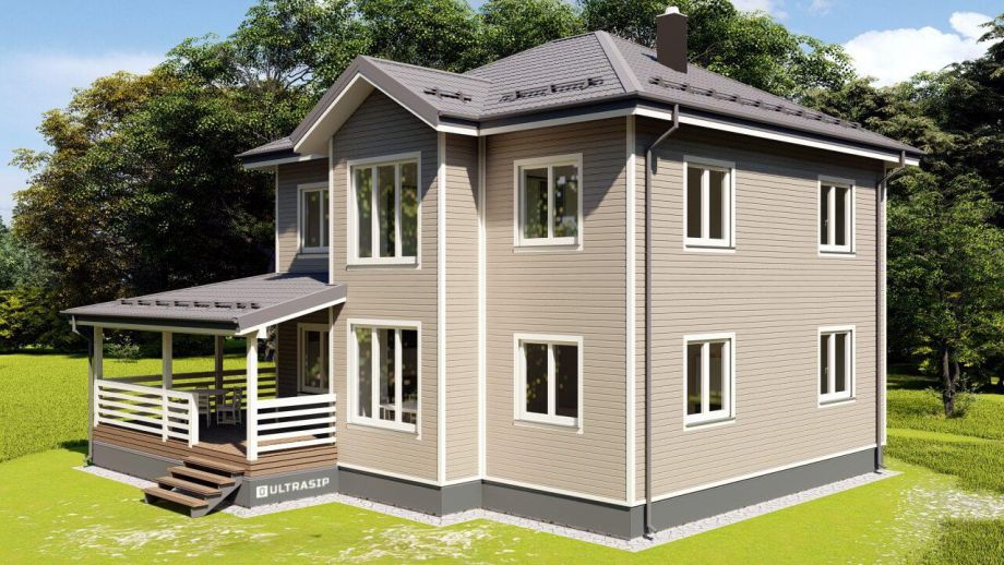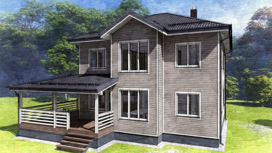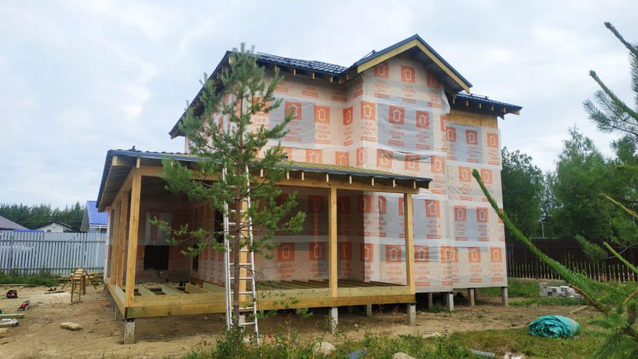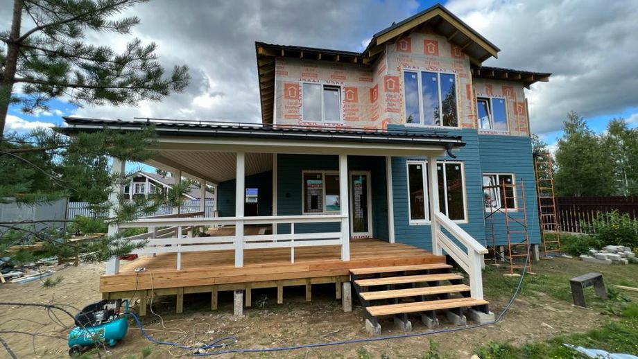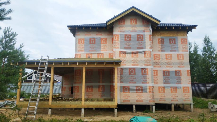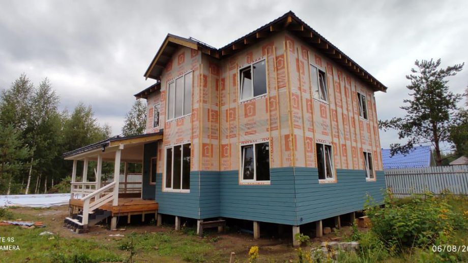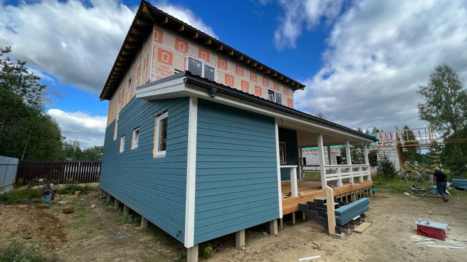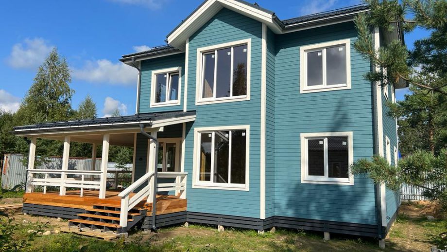 В указанную цену вошел закрытый теплый контур - фундамент (здесь ЖБ-сваи), теплый контур, терраса, кровля с системами водостока и снегозадержания, окна, дверь, и конечно доставка, сборка и комплектующие. Также включена фасадная отделка из фиброцементного сайдинга Дековер.