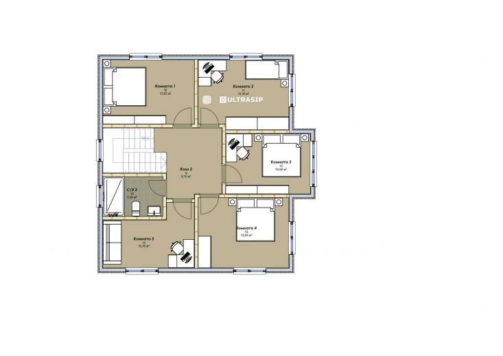 Идеальный набор помещений: 5 спален, 3 санузла, 2 гардеробных, кухня-гостиная в 43 м2. и терраса площадью 50 м2.