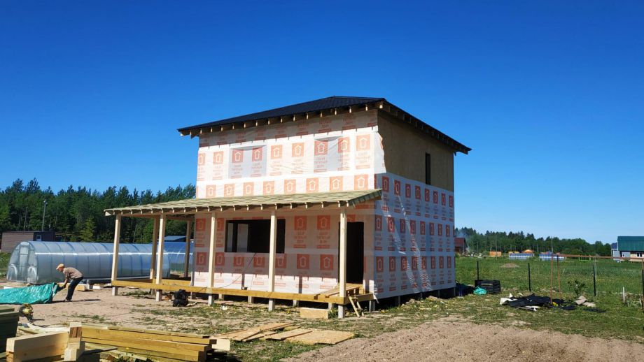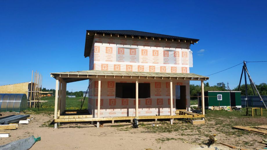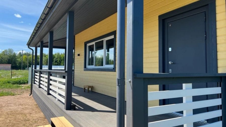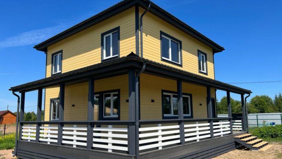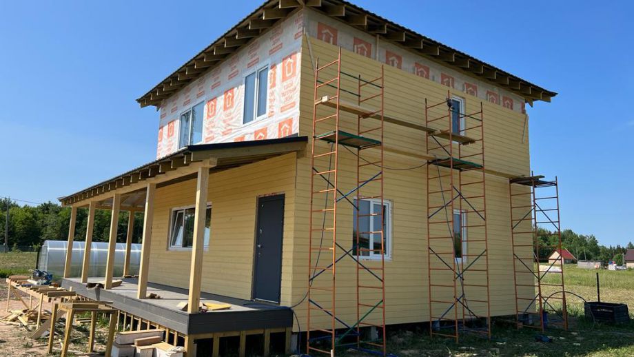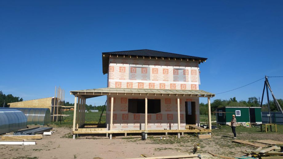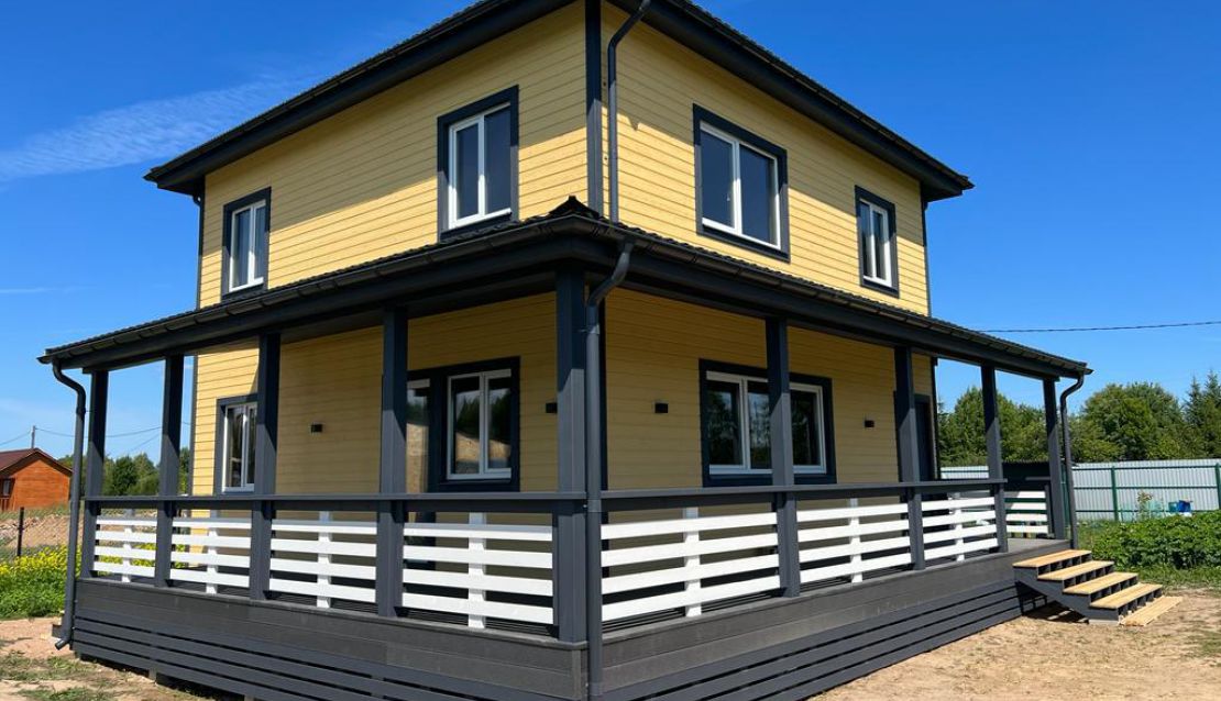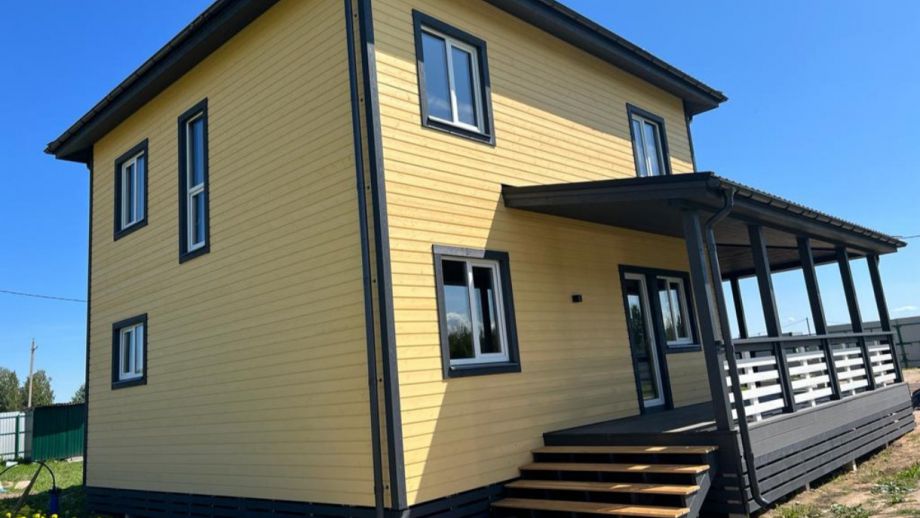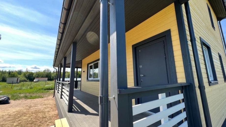Комплектация - закрытый теплый контур - дом с фасадом, окнами, входной дверью, террасой с перилами и крыльцом, системами снегозадержания и водосточной и т.д., но без внутренней отделки.