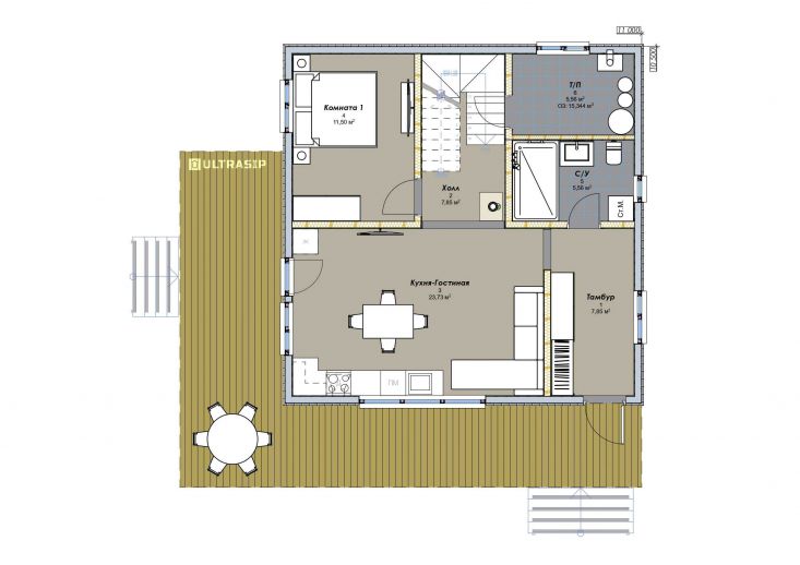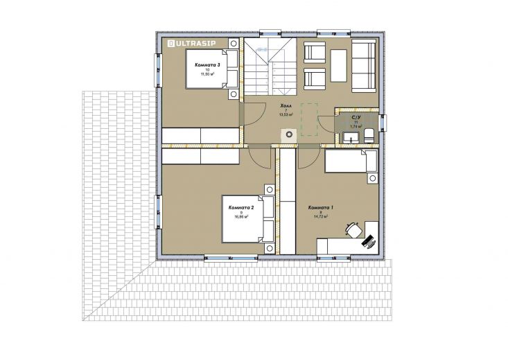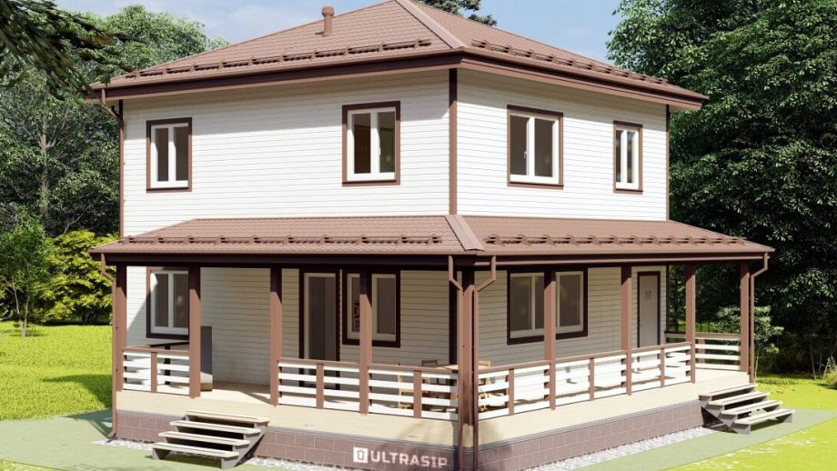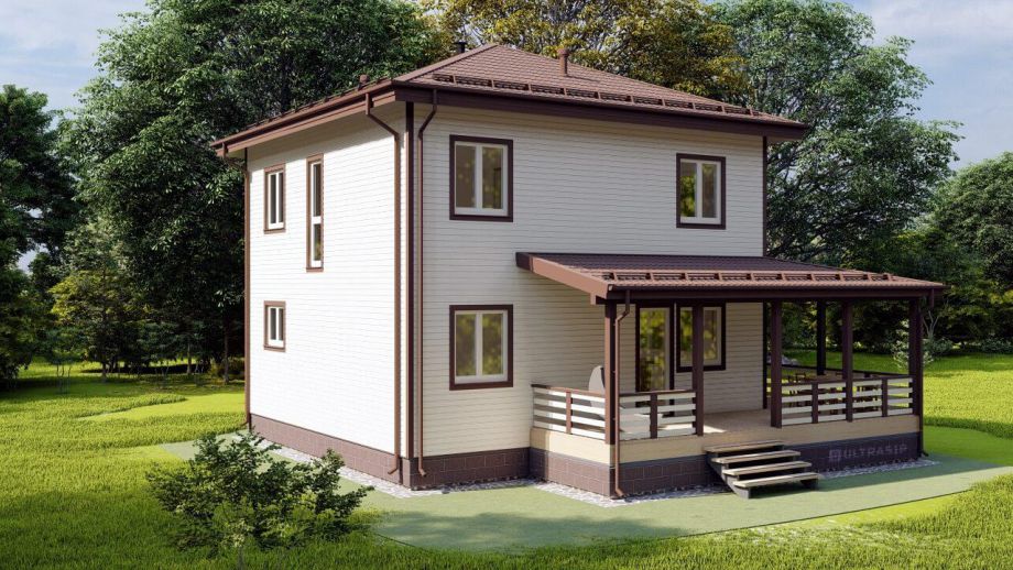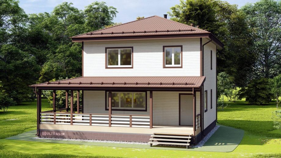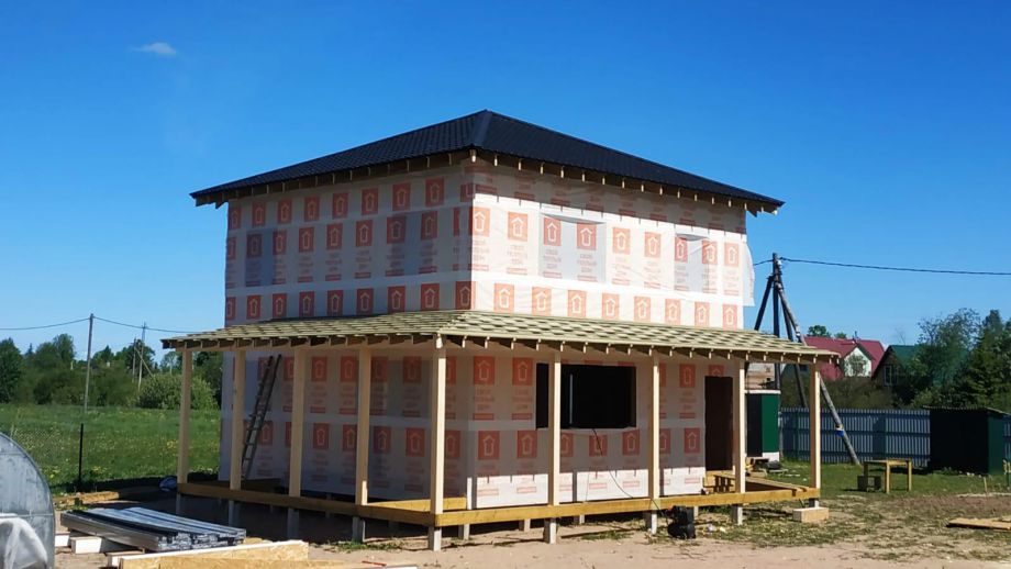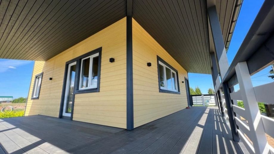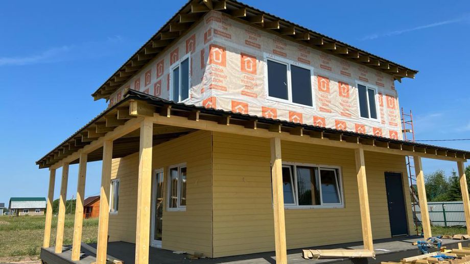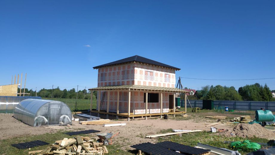 Комплектация - закрытый теплый контур - дом с фасадом, окнами, входной дверью, террасой с перилами и крыльцом, системами снегозадержания и водосточной и т.д., но без внутренней отделки.