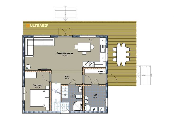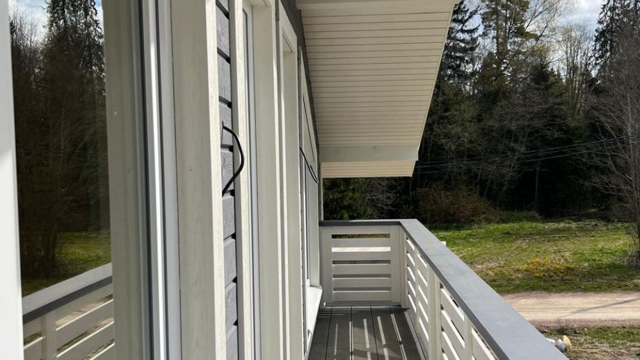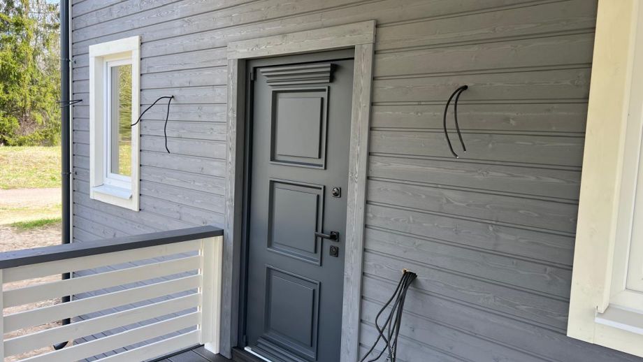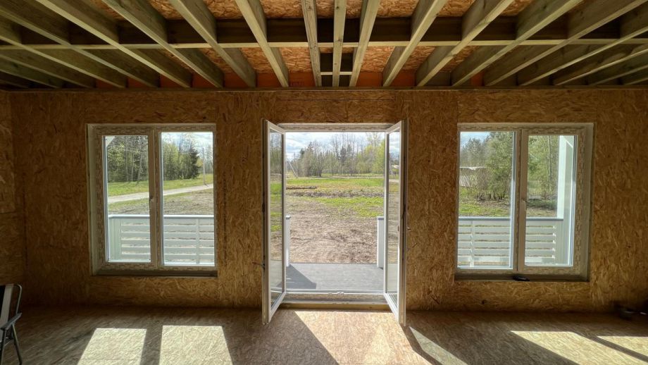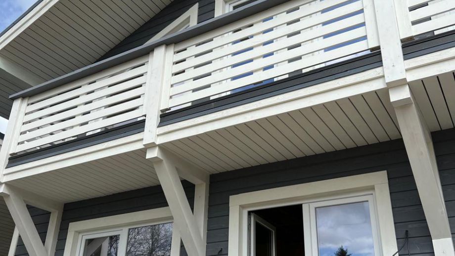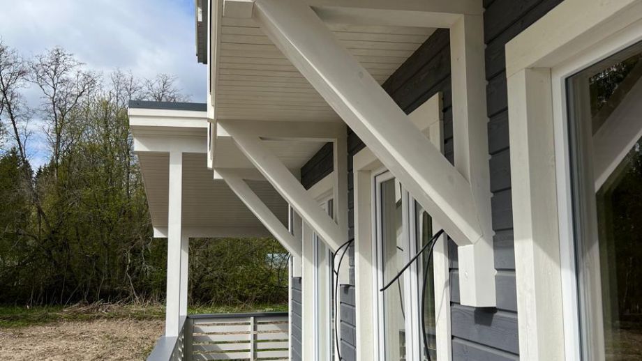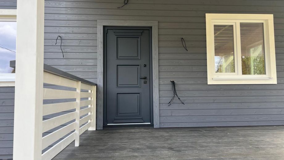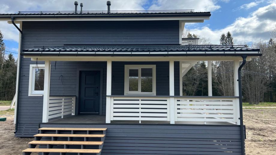 В указанную цену входит закрытый теплый контур с фасадом, окнами (Шуко), входной дверью, системами снегозадержания и водостока, террасой, балконом, перилами, крылечками, отделка цоколя, вентпакет УЛЬТРАВЕНТ, локальная очистная станция Аэробокс (с монтажом).
