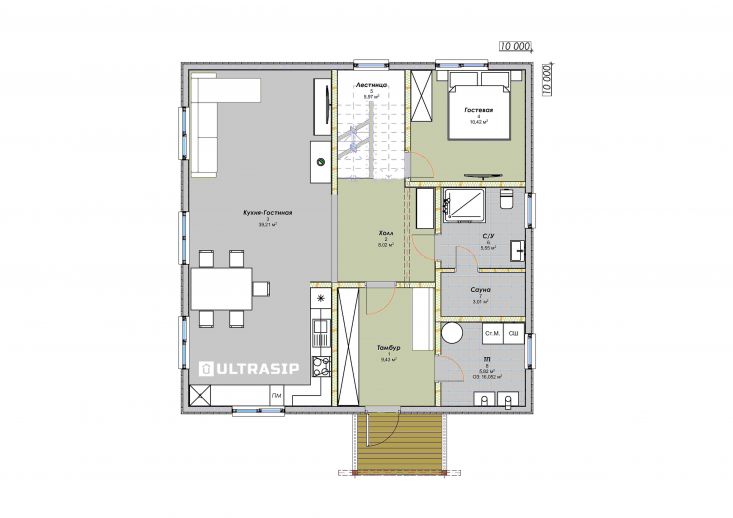 В указанную цену входит "закрытый теплый контур" - собственно теплый контур с доставкой, сборкой и всеми комплектующими, кровля, немецкие окна и финская теплая входная дверь.