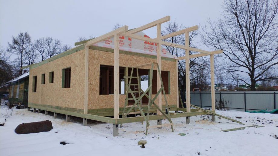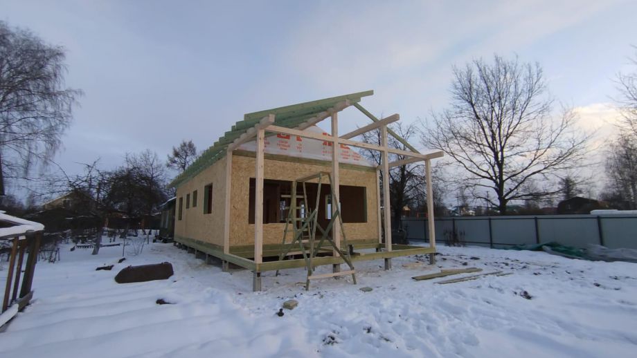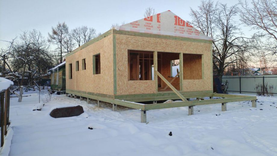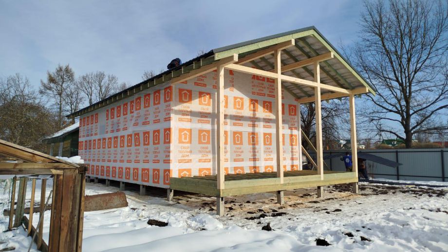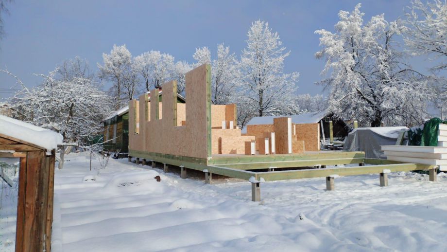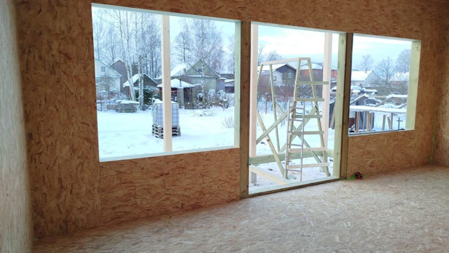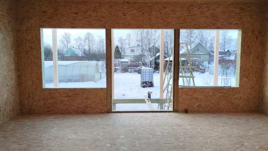 Дом построен в нетипичной для нас комплектации Смарт - это фундамент, закрытый теплый контур без фасада, с окнами, лагами под террасу и крыльцо, без внутренней отделки и инженерных сетей.