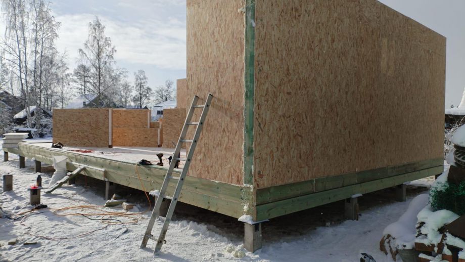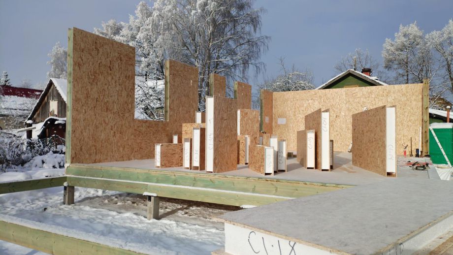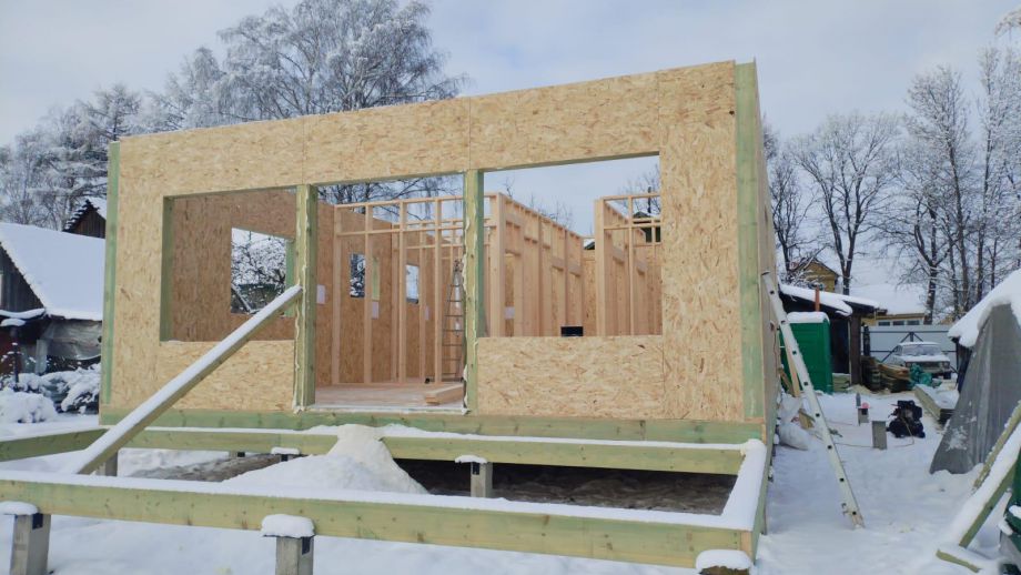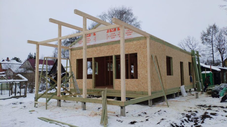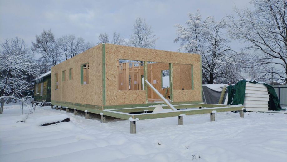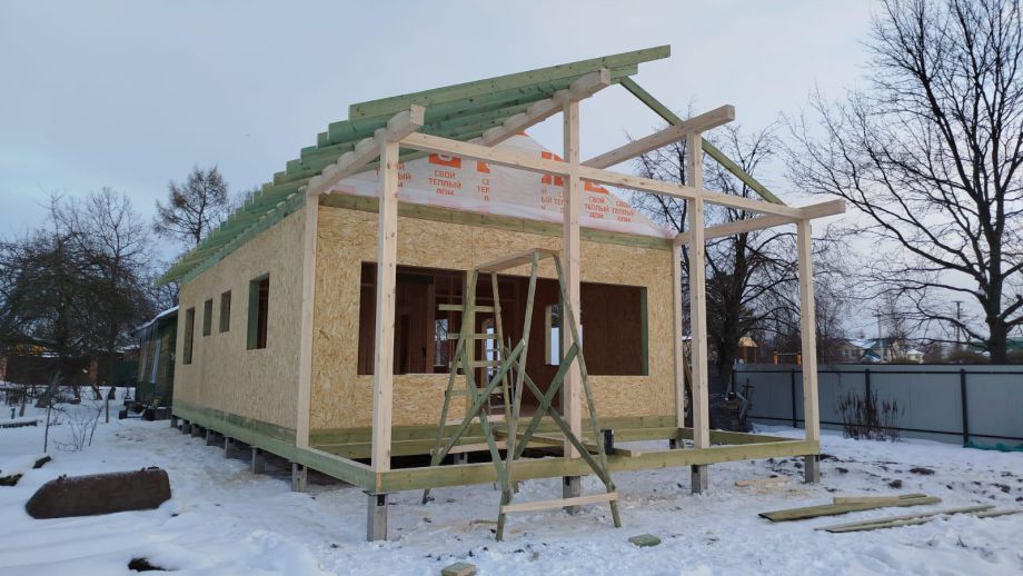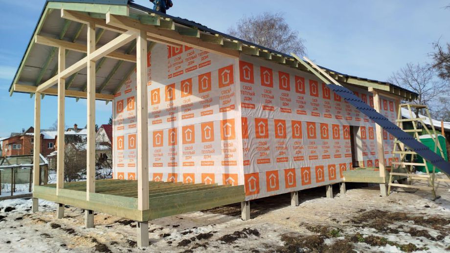 Дом построен в нетипичной для нас комплектации Смарт - это фундамент, закрытый теплый контур без фасада, с окнами, лагами под террасу и крыльцо, без внутренней отделки и инженерных сетей.