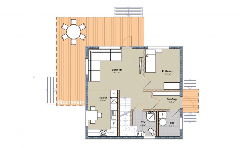 В цену входит закрытый теплый контур - фундамент, теплый контур, кровля, окна и дверь, без террасы.