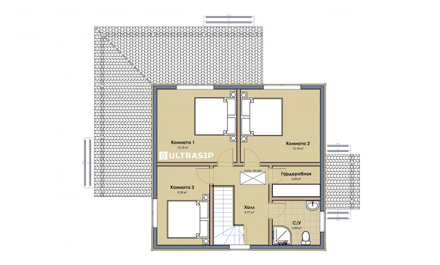 Это проект с удачной и рациональной планировкой в традиционном стиле.