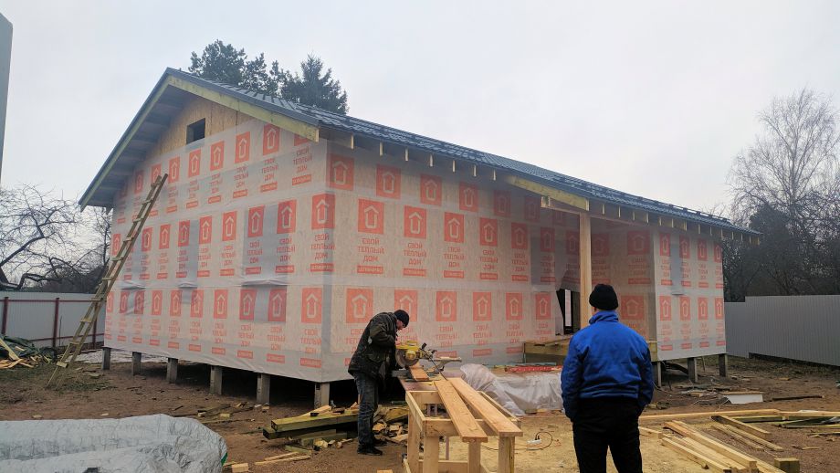 Монтаж фасада заказчик делает самостоятельно, и опытному взгляду видна ошибка в монтаже обрешетки под фасад - ее исправят,