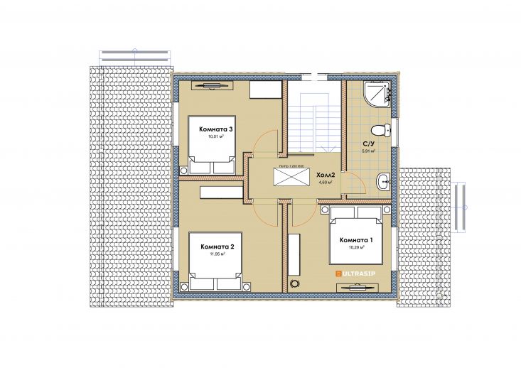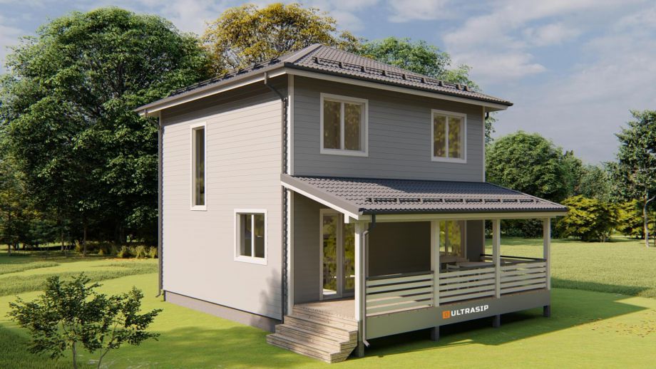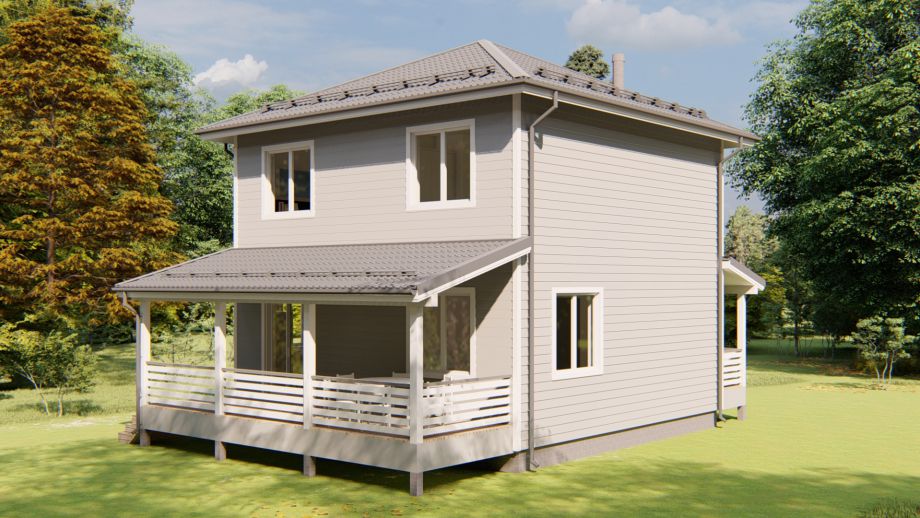 Отвечая на этот запрос, нами был спроектирован рациональный и удобный дом с минимально возможным для двухэтажного дома размером.