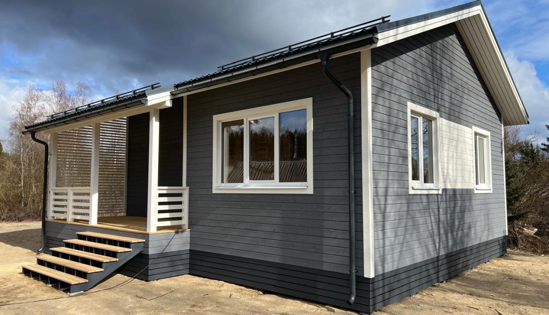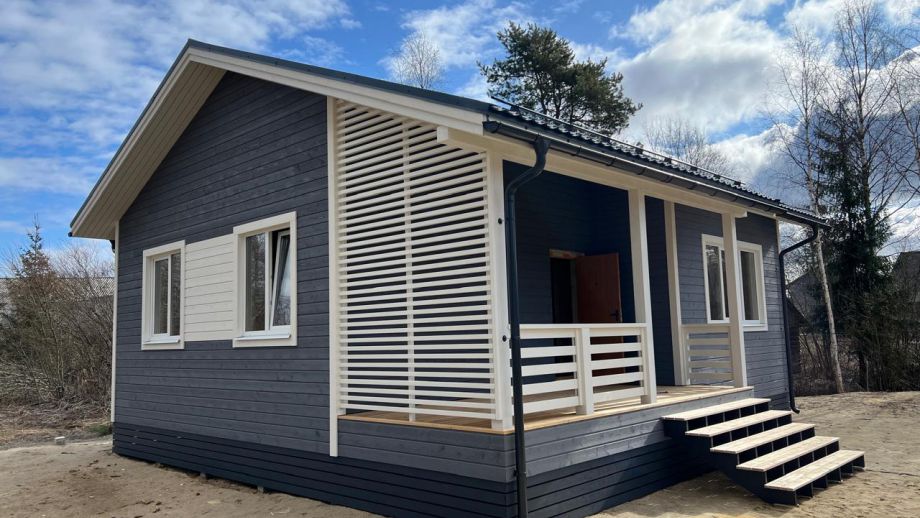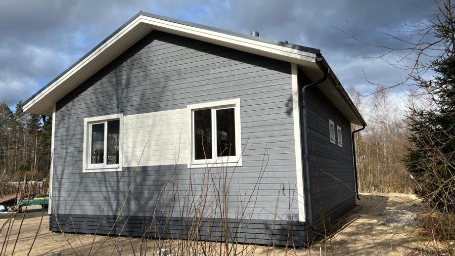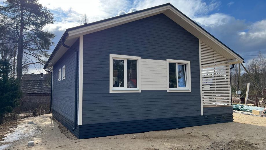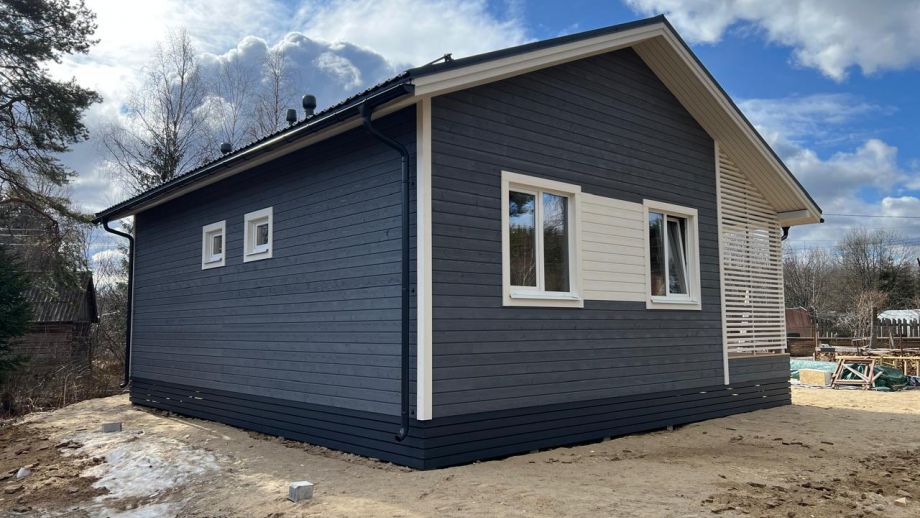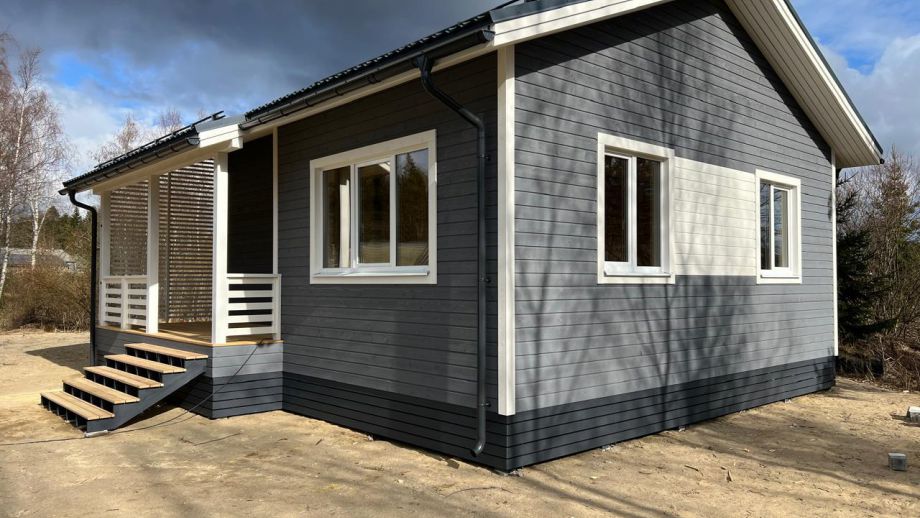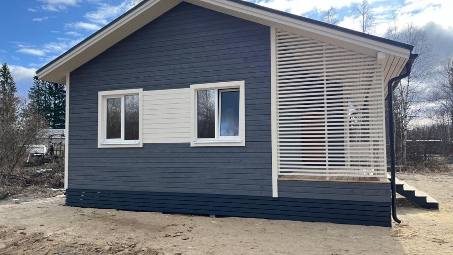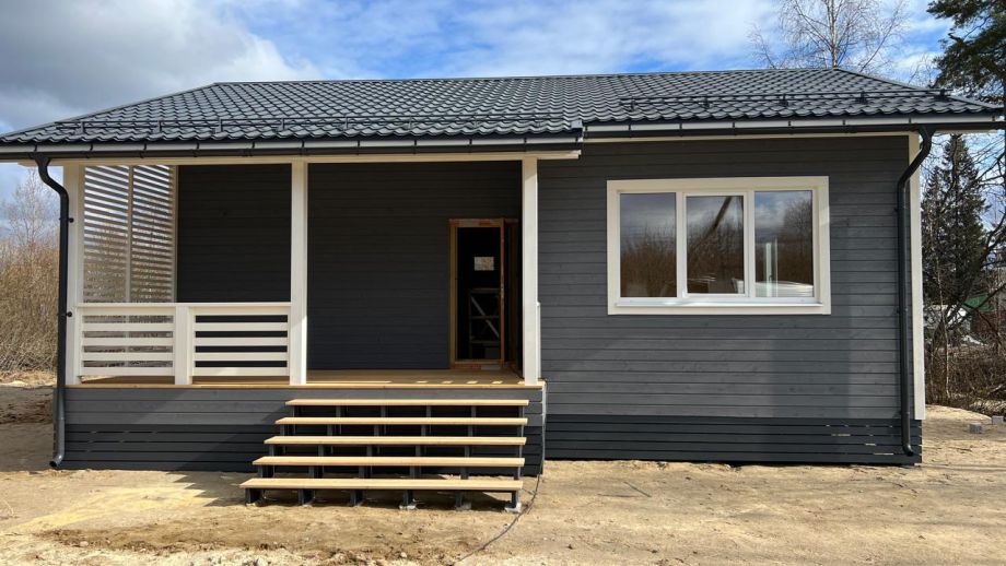 Дом построен в комплектации Оптимум - это фундамент, закрытый теплый контур с фасадом, окнами, дверью, вентпакетом УЛЬТРАВЕНТ, готовой террасой и крыльцом, системами снегозадержания и водостока, без внутренней отделки и инженерных сетей.
