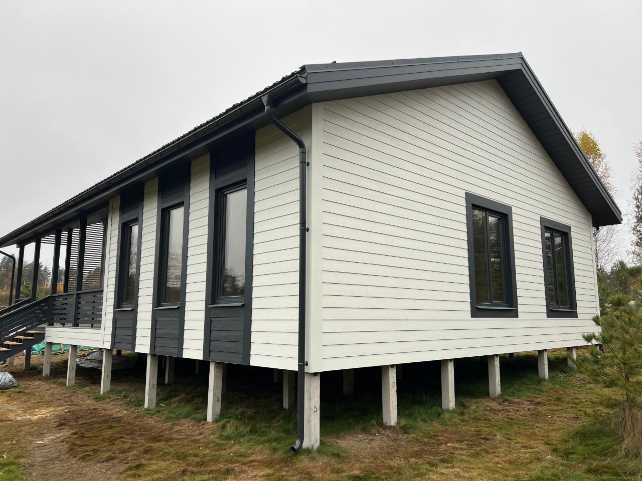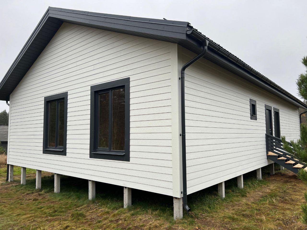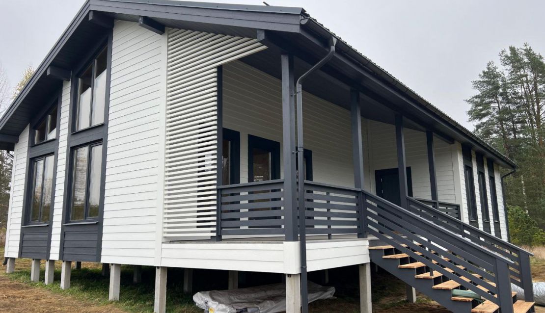 В указанную цену входит дом в комплектации Смарт - это фундамент, закрытый теплый контур с окнами, дверью, вентпакетом УЛЬТРАВЕНТ, готовой террасой и крыльцом, системой снегозадержания, без наружной и внутренней отделки.