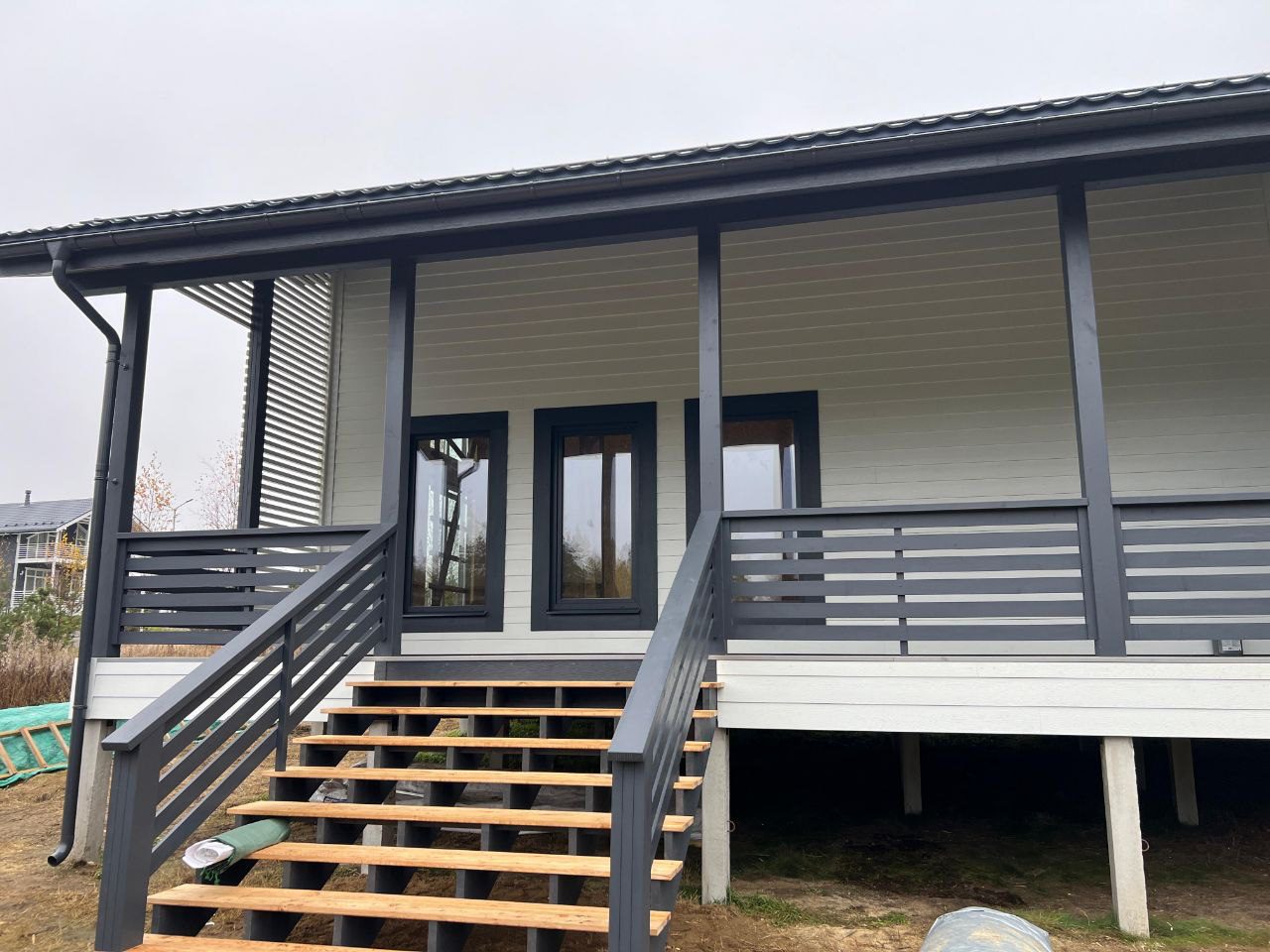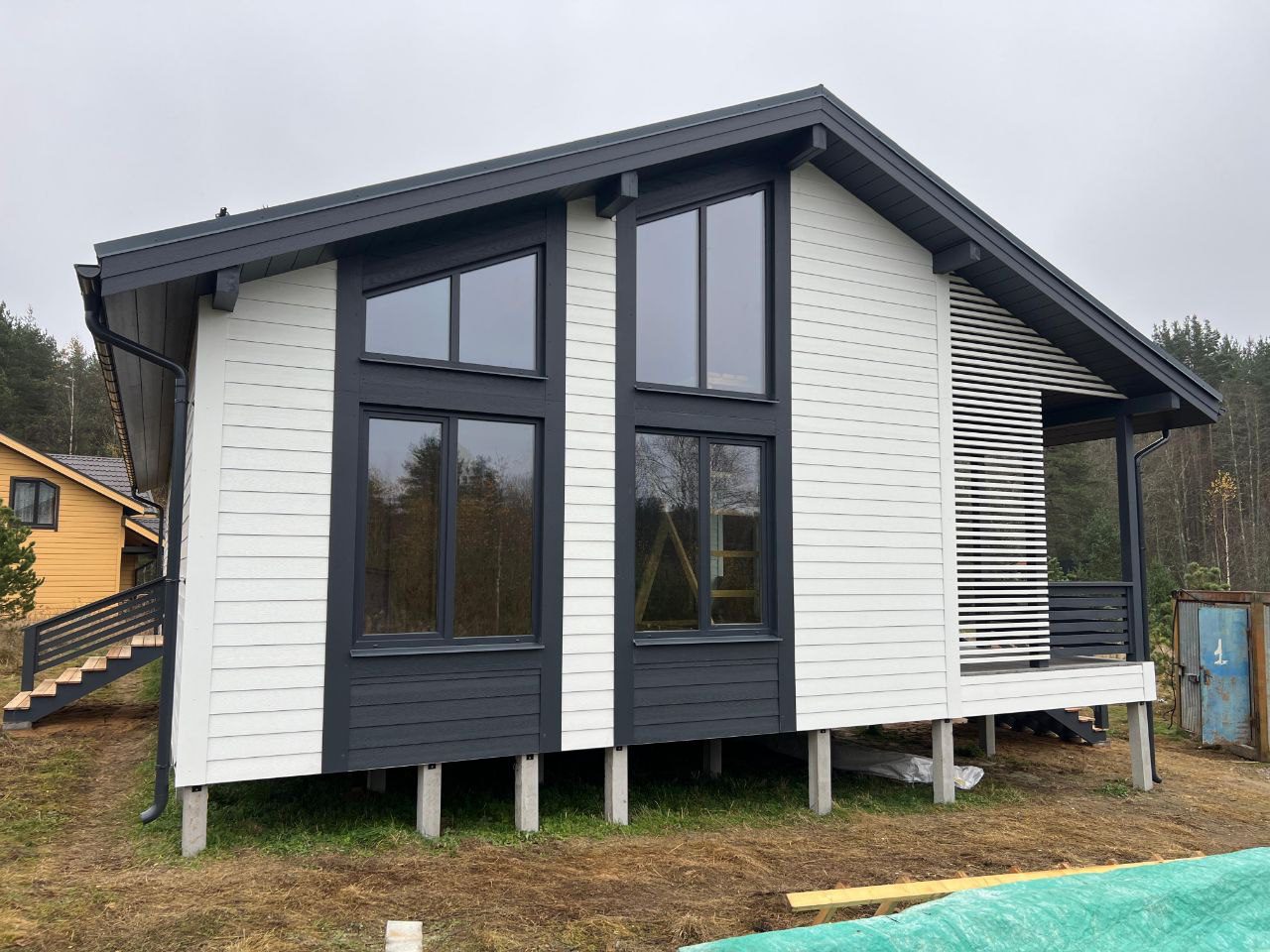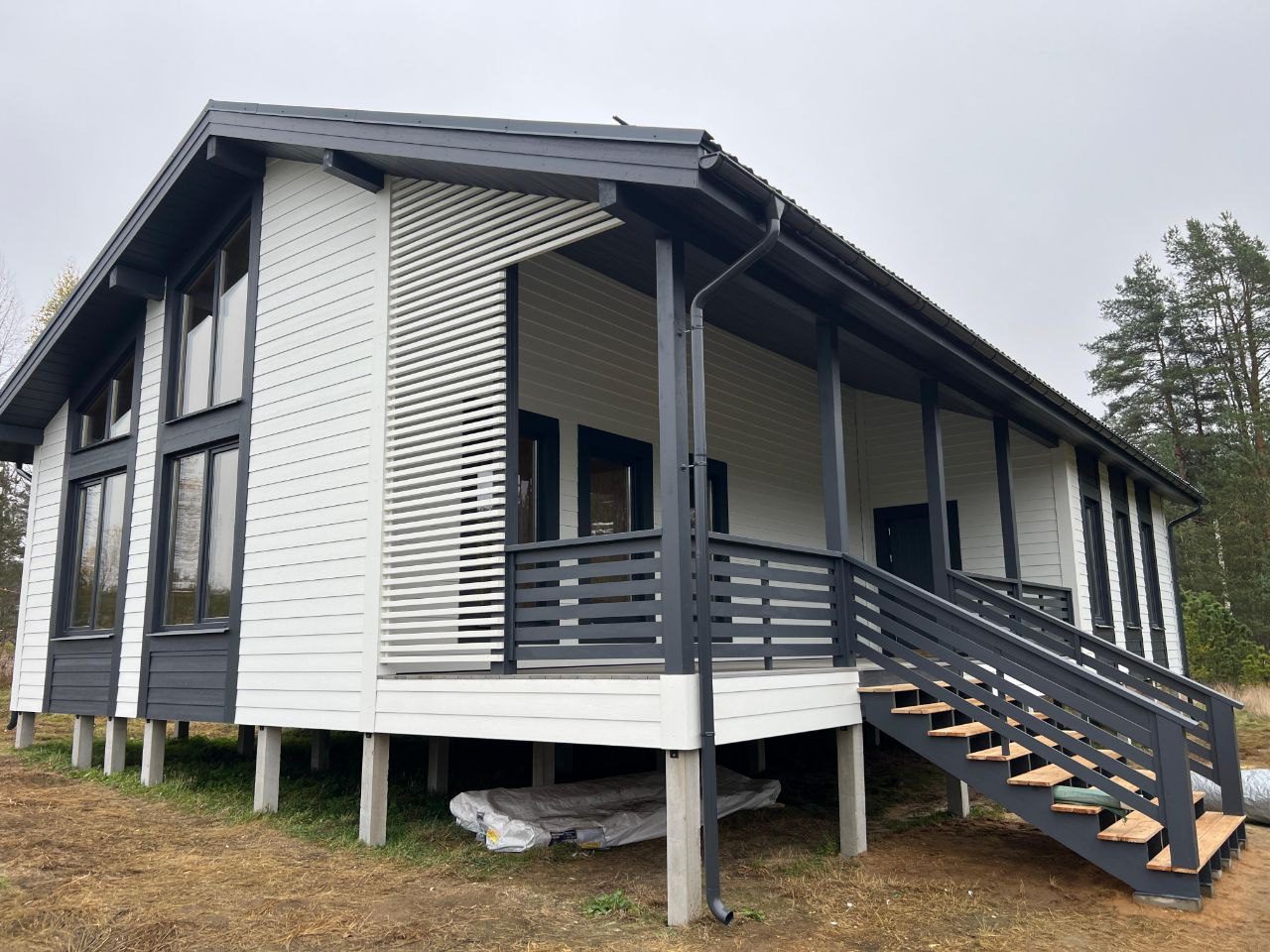 В указанную цену входит дом в комплектации Смарт - это фундамент, закрытый теплый контур с окнами, дверью, вентпакетом УЛЬТРАВЕНТ, готовой террасой и крыльцом, системой снегозадержания, без наружной и внутренней отделки.