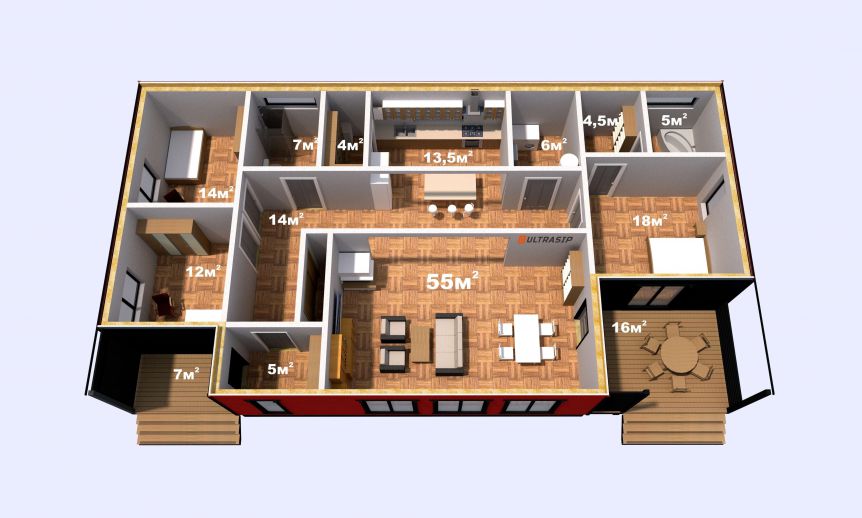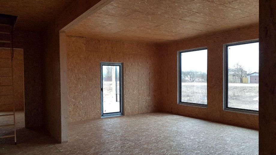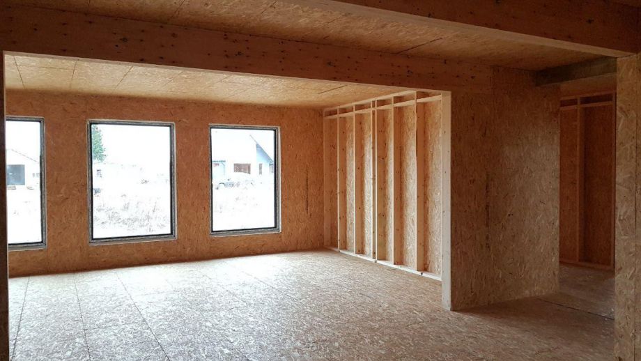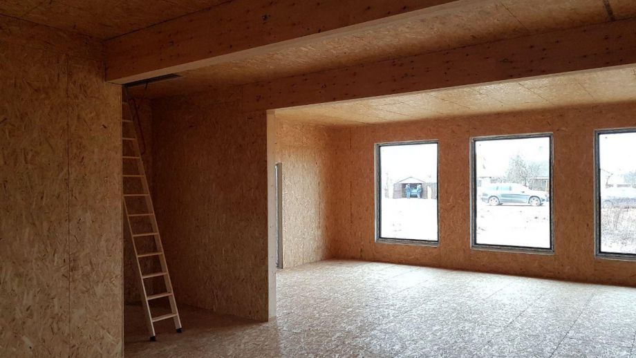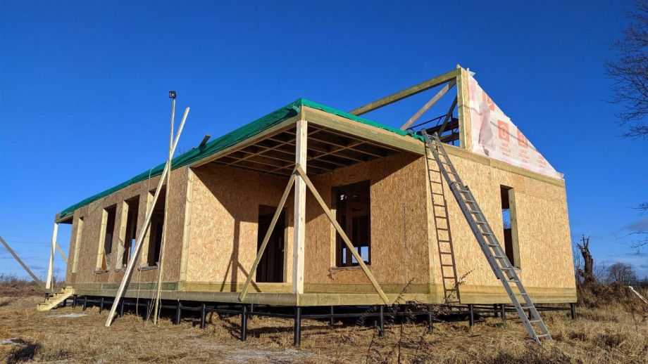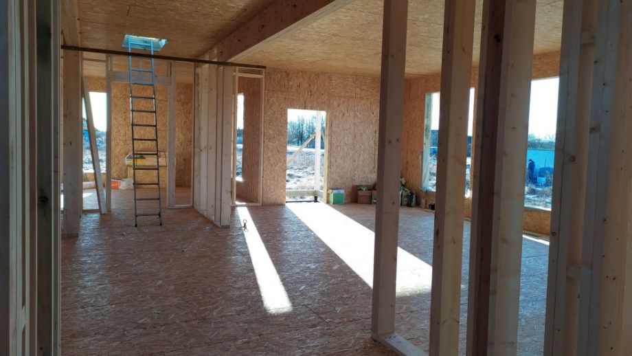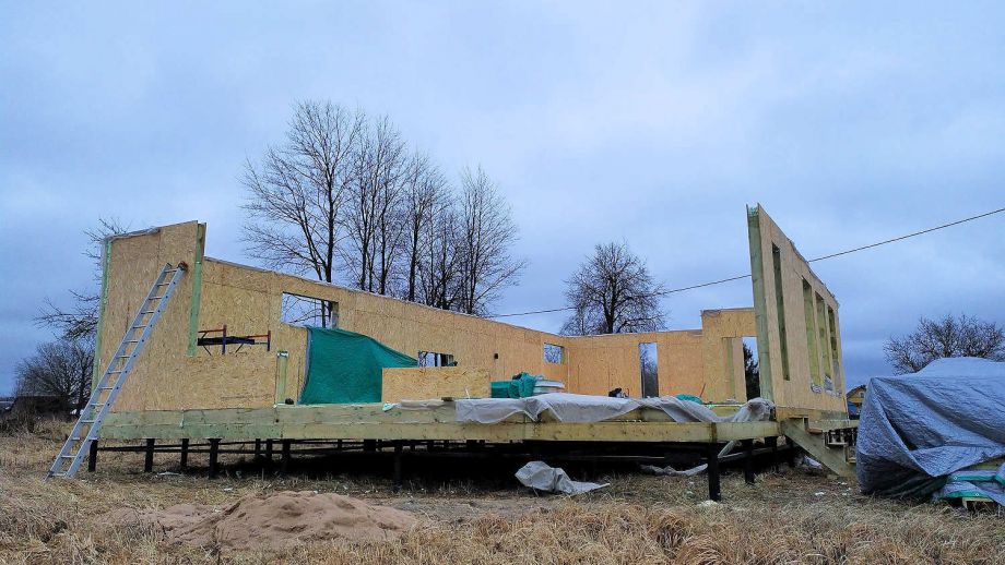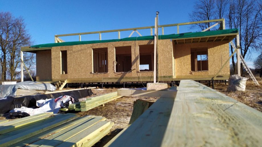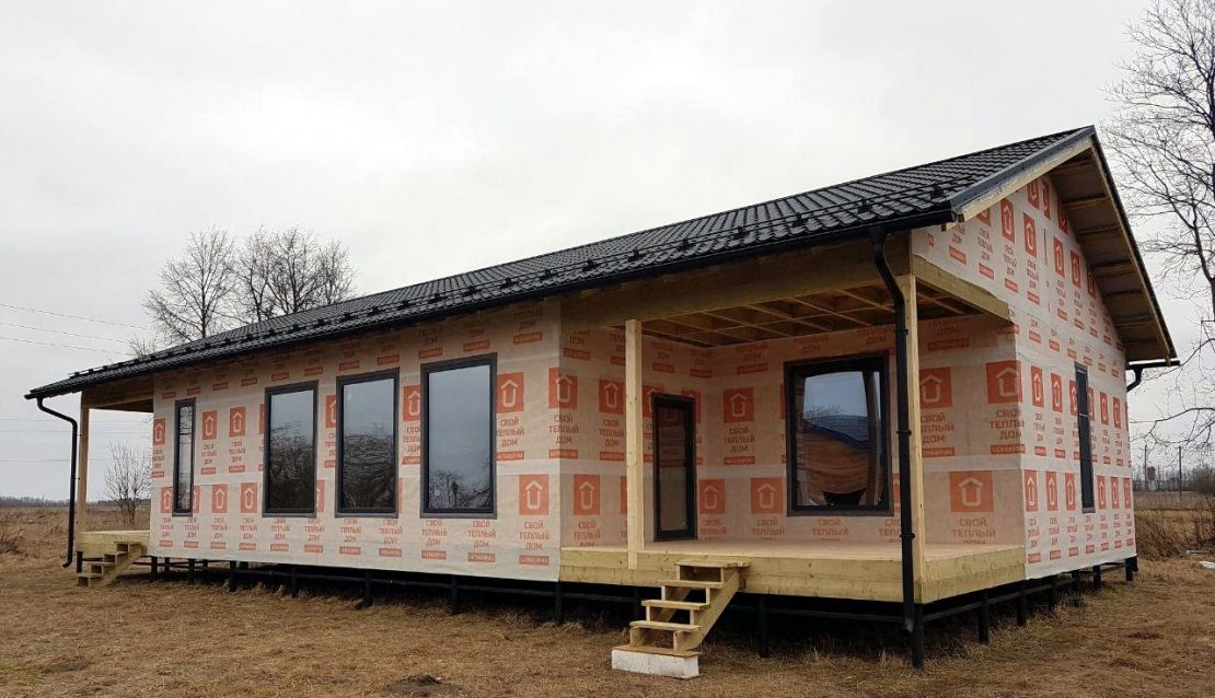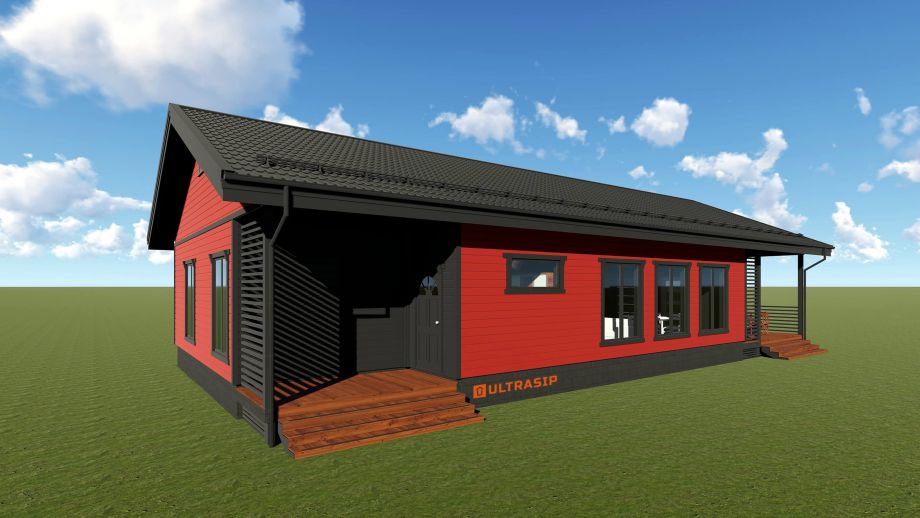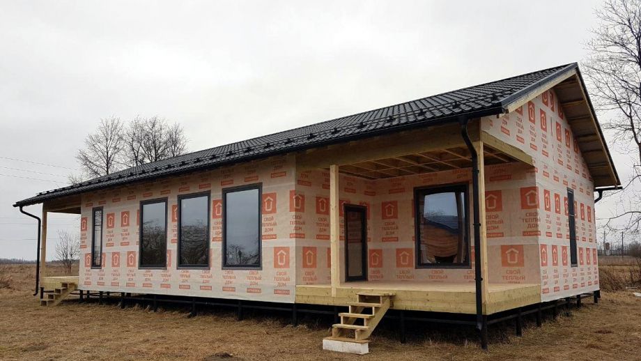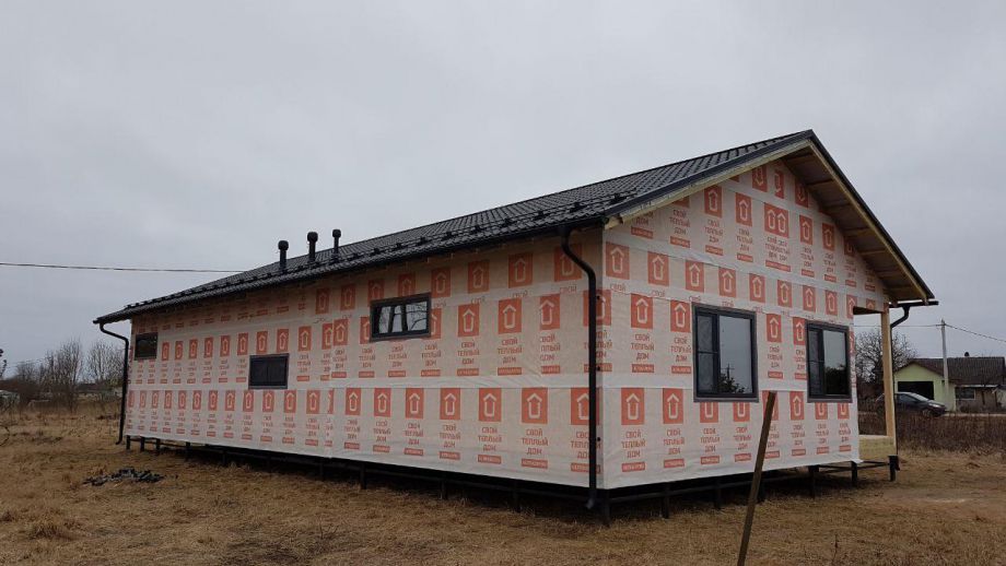 Этот большой одноэтажный дом из СИП-панелей мы построили под Кингисеппом.