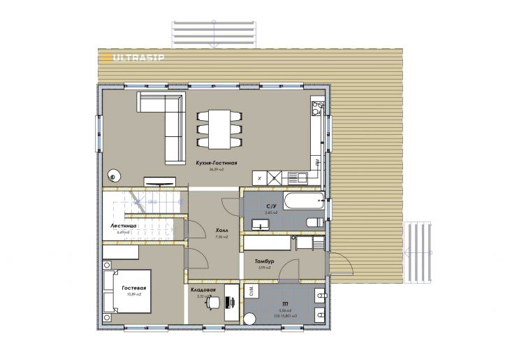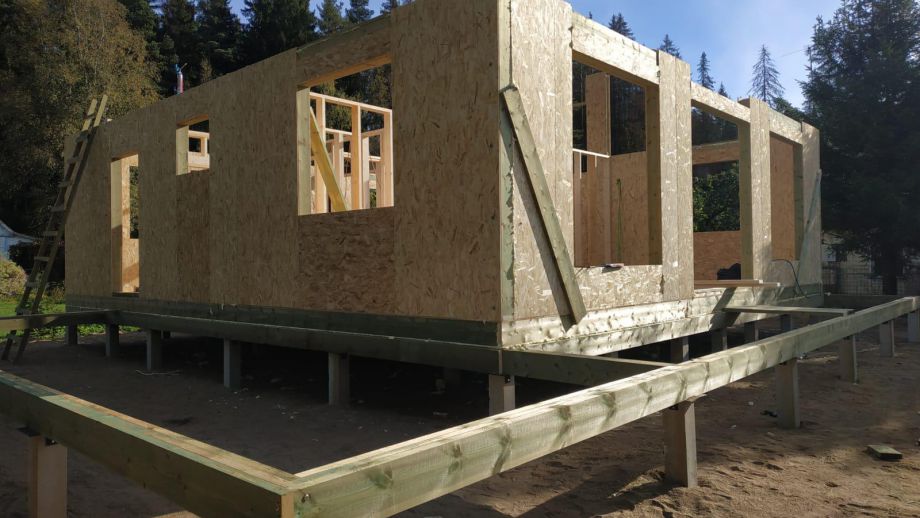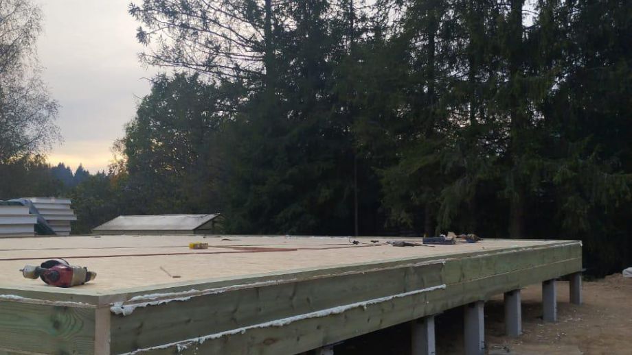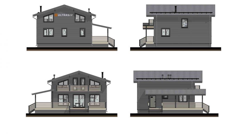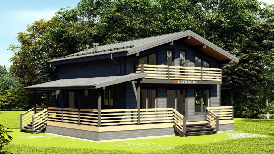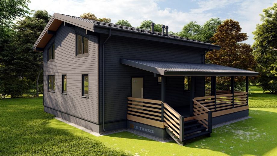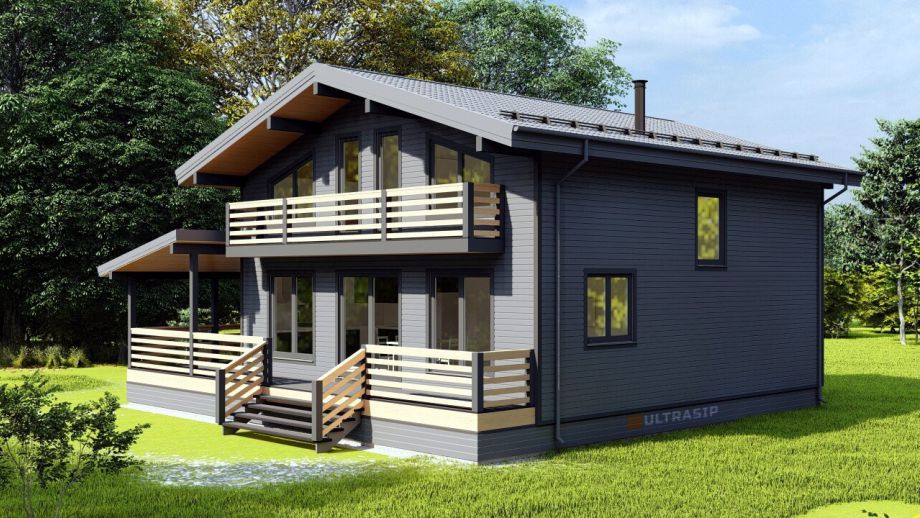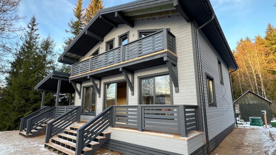 Дом построен в комплектации "закрытый теплый контур" - с фасадом, окнами, входной дверью, системами снегозадержания и водостока, террасой, балконом, перилами, крылечками, отделкой цоколя и вентпакетом УЛЬТРАВЕНТ.