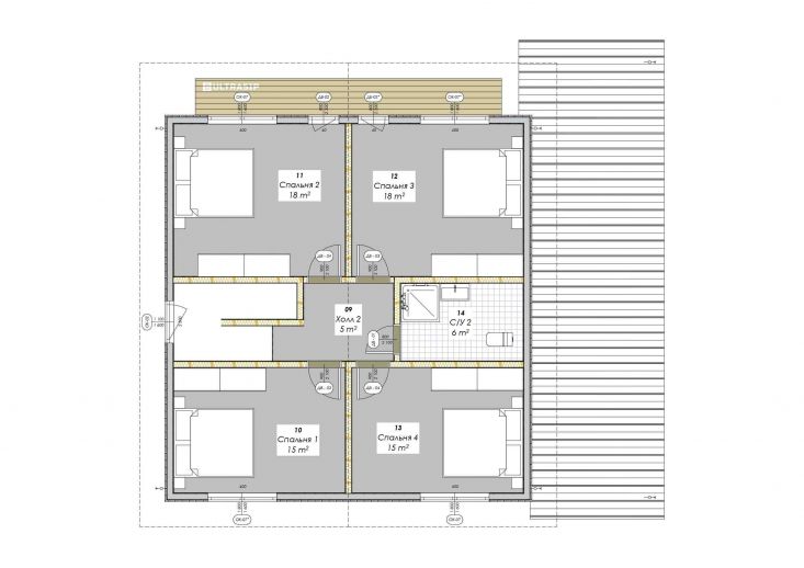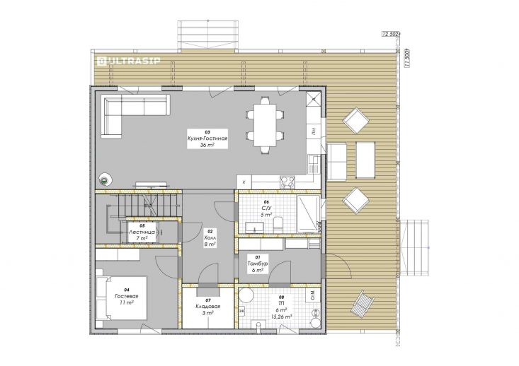 Дом строится в комплектации "закрытый теплый контур" - с фасадом, окнами, входной дверью, системами снегозадержания и водостока, террасой, балконом, перилами, крылечками, отделкой цоколя и вентпакетом УЛЬТРАВЕНТ.