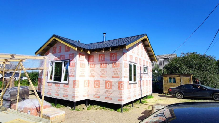 Мы построили этот скромный, но комфортный и симпатичный дом с продуманной планировкой прямо под Санкт-Петербургом - в п. Малое Карлино.