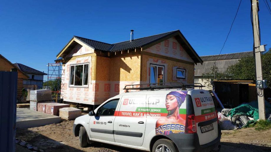 За основу был взят наш проект Сканди-73, и после привязки к участку и адаптации проекта по пожеланиям заказчиков мы приступили к постройке.