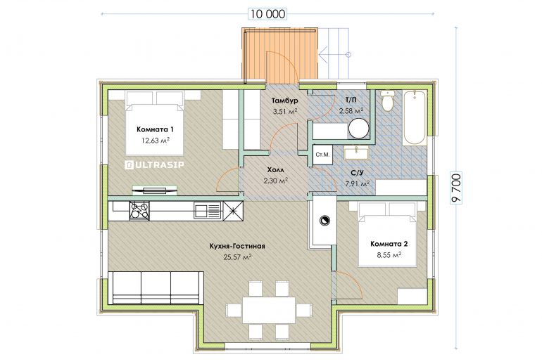 Цена указана в комплектации "закрытый теплый контур" - фундамент, теплый контур, кровля, окна и дверь.