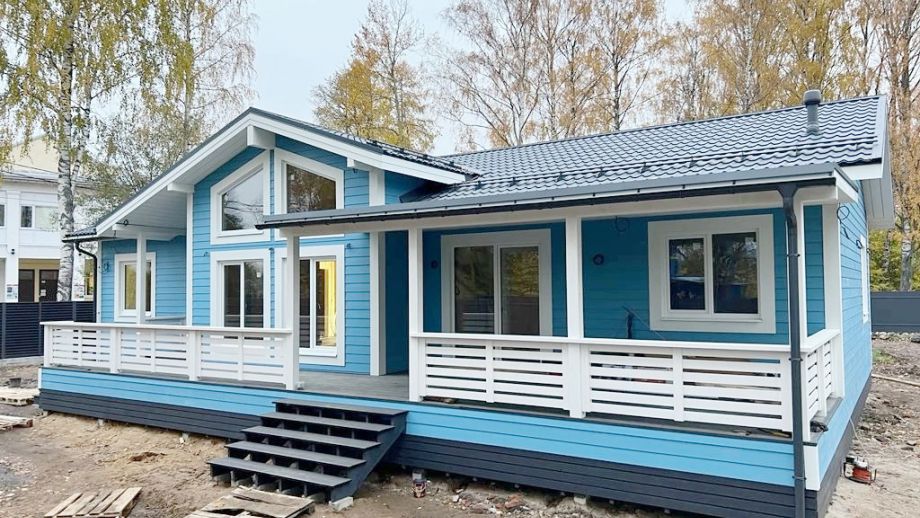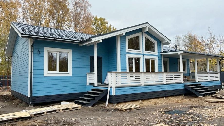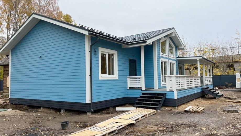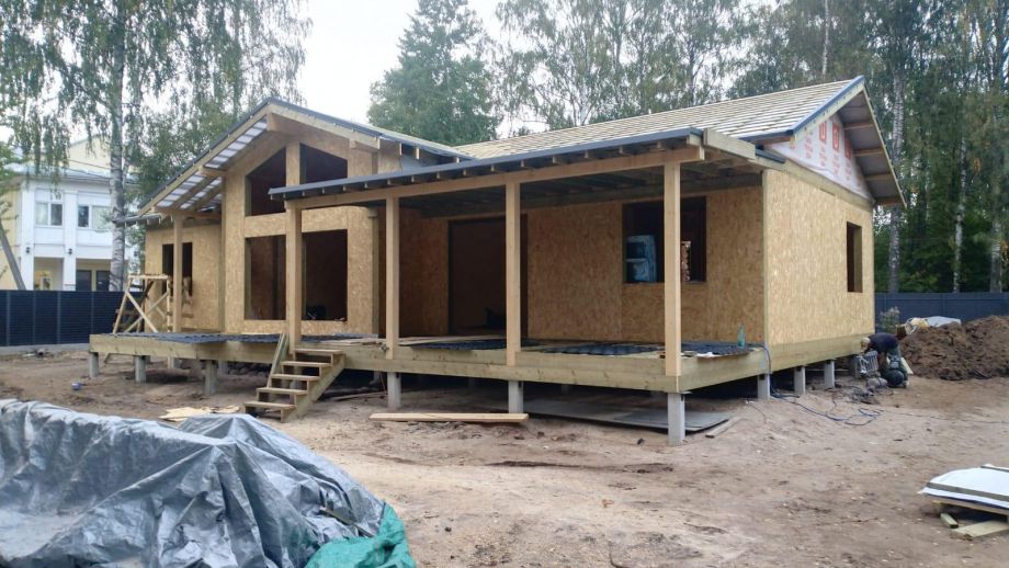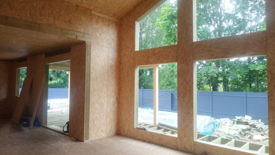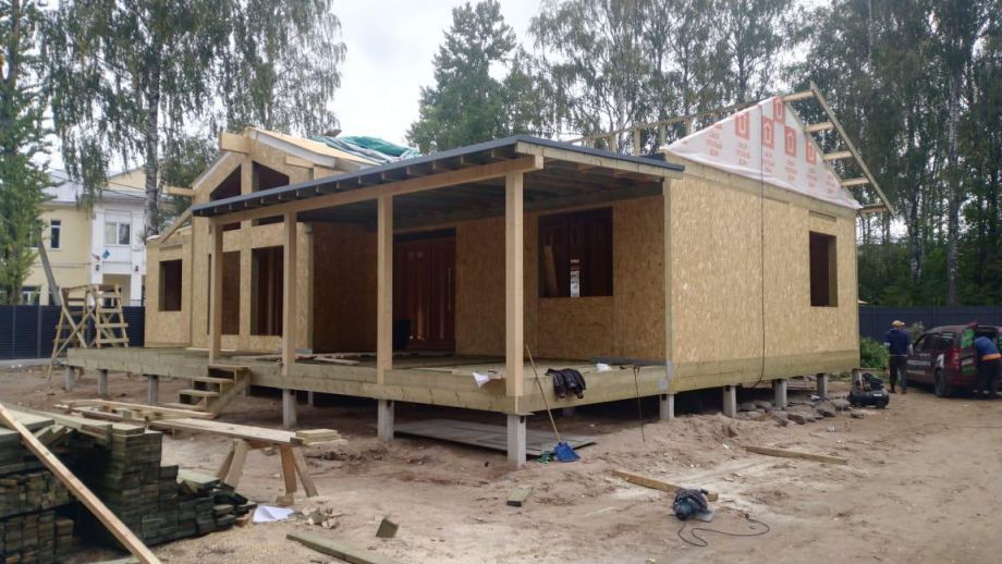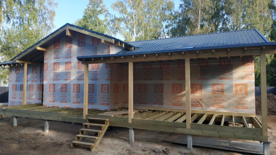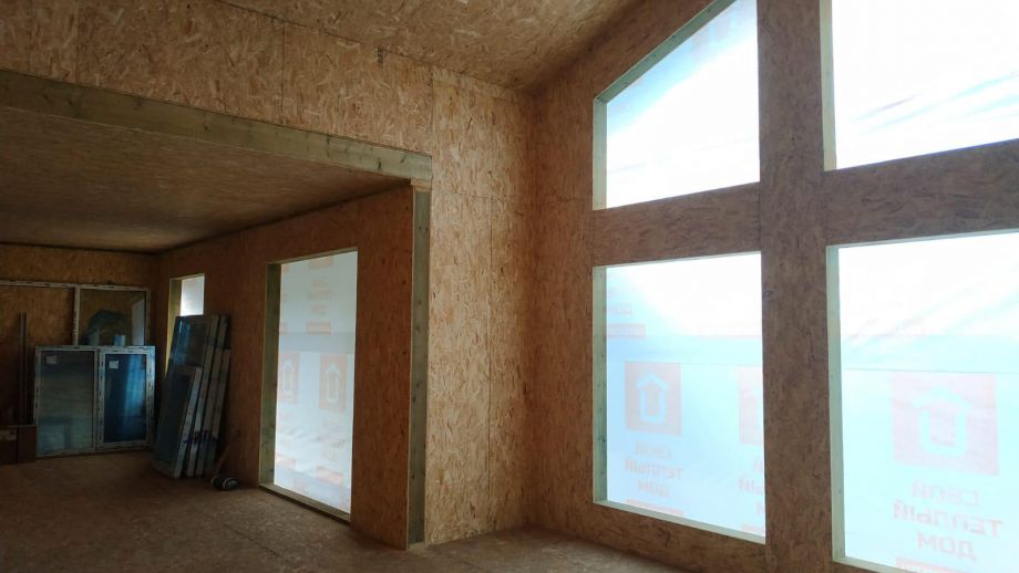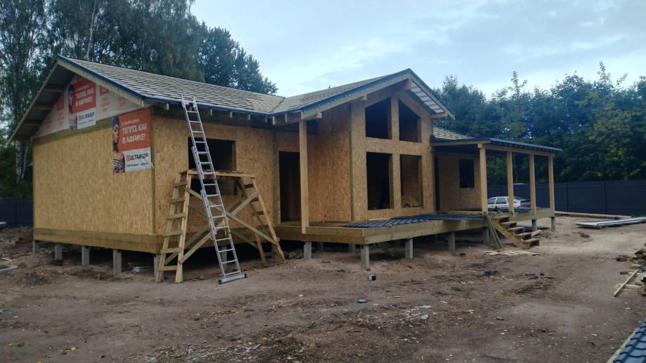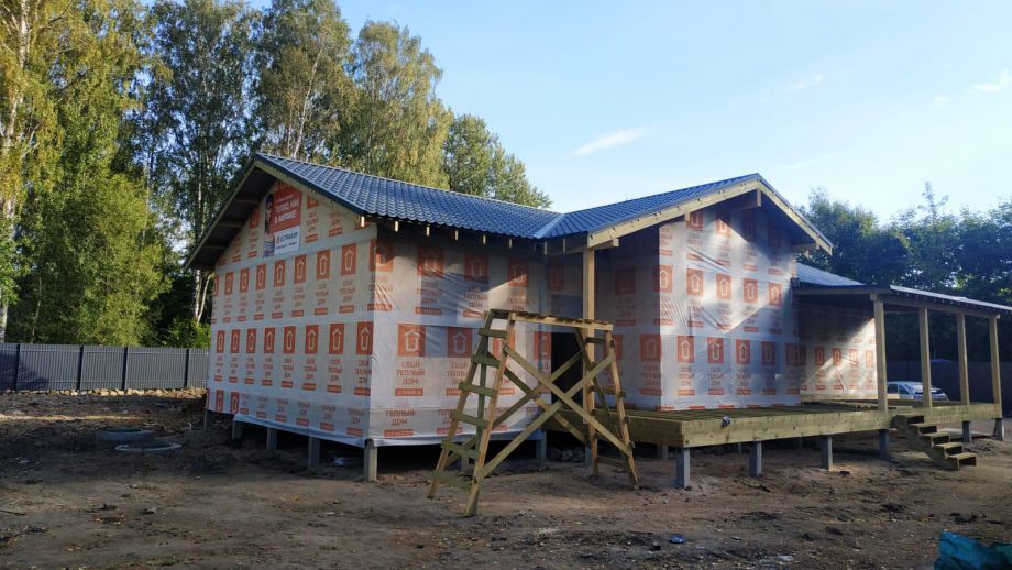 Дом построен нами в комплектации Оптимум - это фундамент, закрытый теплый контур с фасадом, окнами, дверью, вентпакетом УЛЬТРАВЕНТ, готовой террасой и крыльцом, системами снегозадержания и водостока. Внутреннюю отделку заказчик решид сделать самостоятельно.
