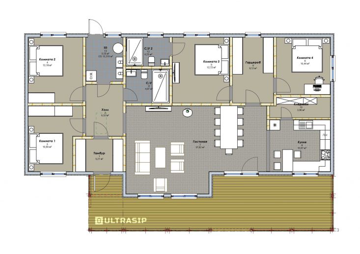 Типично скандинавский формат и экстерьер, и адаптированная под участок и под желания заказчиков планировка - таков построенный нами дом в д. Рахья. Предусмотрено все, что нужно для комфортной жизни - кухня-гостиная со "вторым светом" площадью 38м2, удобная терраса, два санузла, гардеробная, кладовка, техпомещение и четыре жилых комнаты. Учтены инсоляция, вид из окон, расположение заезда, наличие шумных соседей и трасс по соседству, и еще множество нюансов.