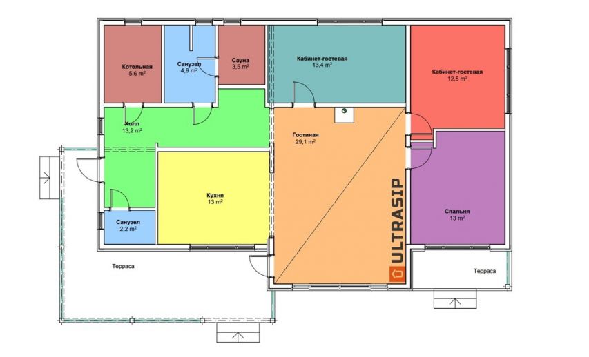 Изюминка дома - "второй свет" в гостиной, он дает ощущение простора при относительно небольшой ее площади.
