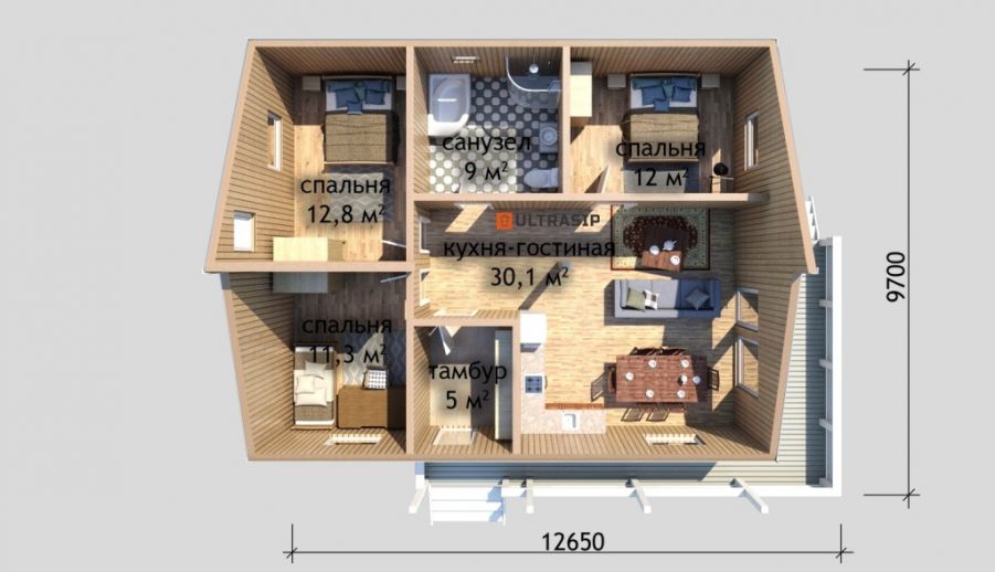 Изюминка дома - разноуровневая кровля. Она типична скандинавской школы архитектуры, которая стремительно набирает популярность и в нашей стране.