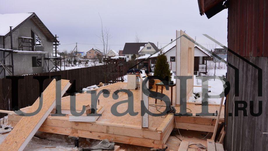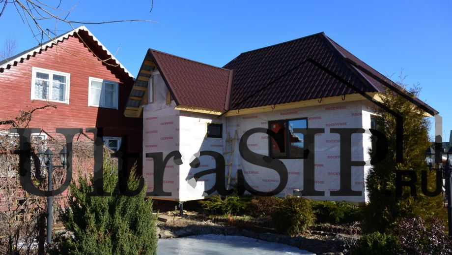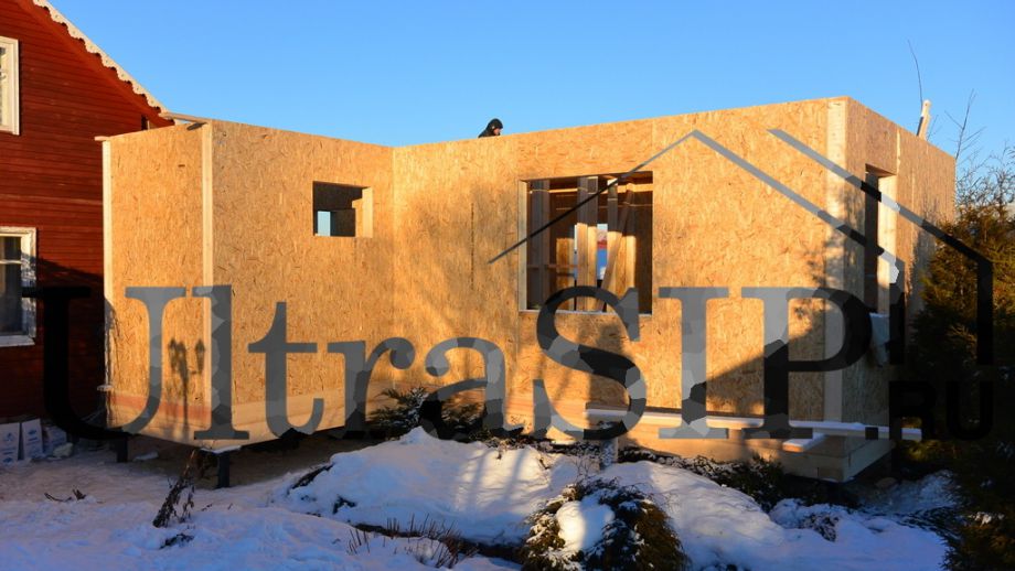 Заказчик предложил нам построить пристройку из СИП-панелей к существуюшему дачному дому, но в итоге мы построили отдельный маленький домик.
