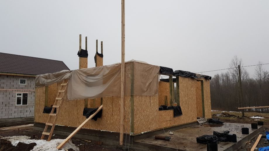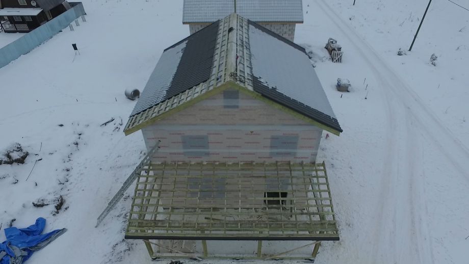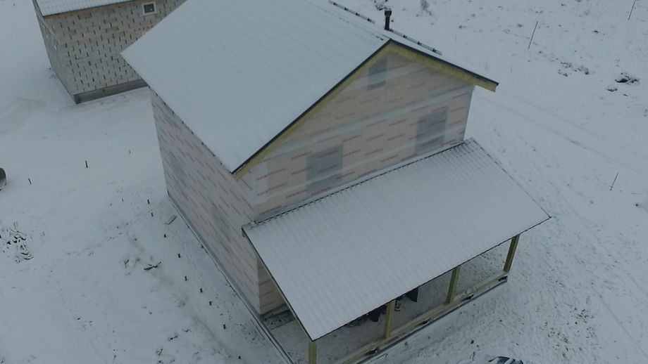 В тихом и уютном поселке на севере Ленинградской области мы построили энергоэффективный дом из СИП-панелей. Дом построен на готовом плитном фундаменте. Площадь дома 128 кв.м., площадь террасы 24 кв.м.Высота первого этажа 2,8м., высота второго этажа 2,5м. Домокомплект из СИП панелей (OSB-3 Калевала 12 мм, пенопласт завода "Новопласт" ПСБ -С25Ф высокой реальной плотности - 17 кг/м3, клей ПУР производства BASF, Германия). Чердачное перекрытие из SIP панелей 224 мм, несущие стены из СИП-панелей 174 мм. Внутренние перегородки комбинированные - частично из СИП-панелей 174мм, частично по каркасной технологии. Пиломатериал из отборного пиловочника хвойных пород, высушен в камере до влажности 12-16%, калиброван на рейсмусном станке, обработан антисептиком.
