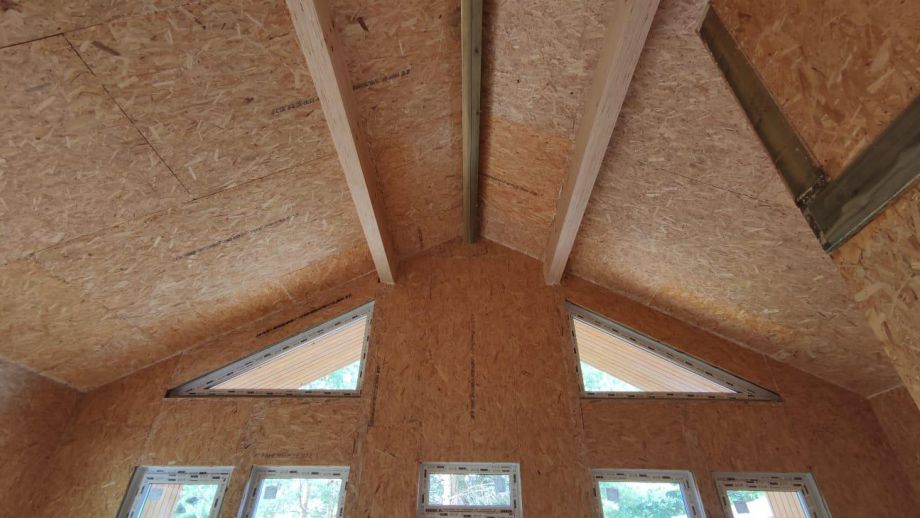 Дом построен в комплектации Оптимум - это закрытый теплый контур с фасадом, окнами, террасой, чердачной лестницей, системами снегозадержания и водосточной, на фундаменте из забивных железобетонных свай с обвязкой пакетом из доски, и конечно доставка, комплектующие и качественная сборка дома под надзором инженера технадзора.