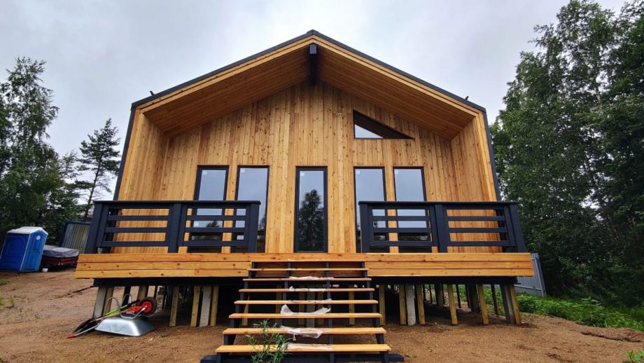 В цену входит полностью законченный теплый контур, с фасадом, окнами, вентиляцией, кухонной вытяжкой, террасой, чердачной лестницей, доставкой, комплектующими и качественной сборкой.