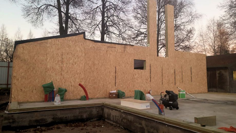 Второй пункт определил появление третьего - фундамент под домом УФФ, утеплённый финский, утолщенный до 300мм для возможности монтажа кирпичного фасада - его заранее смонтировало наше фундаментное подразделение.