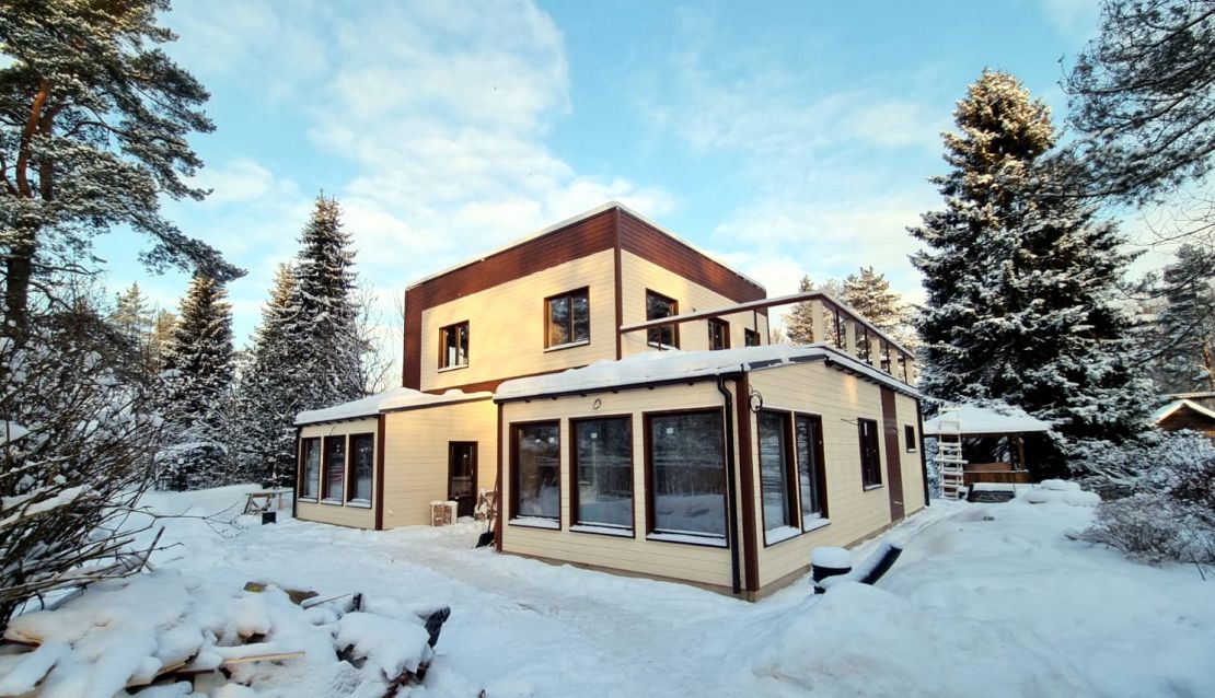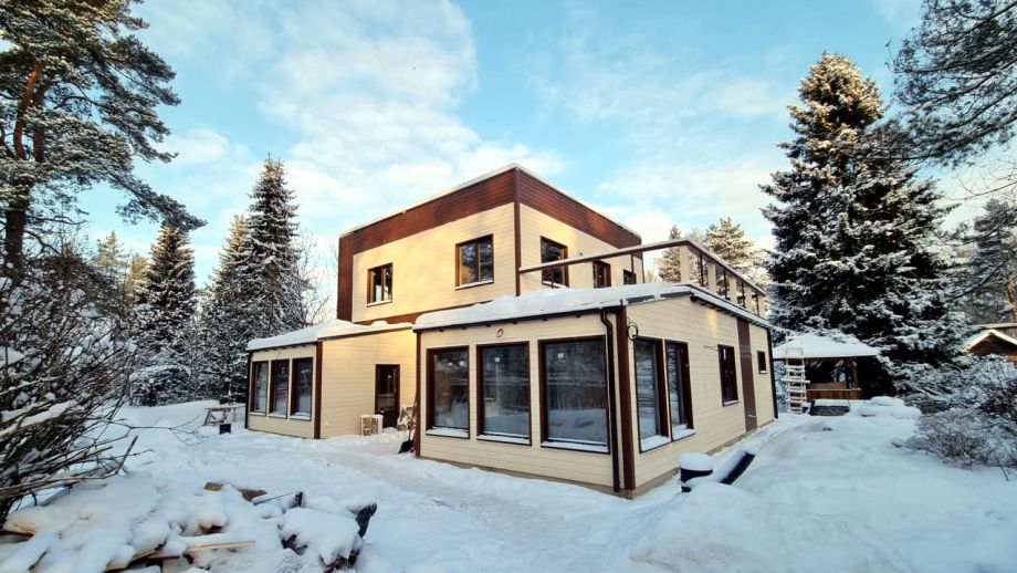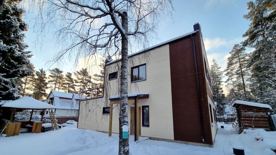 В ближайшем пригороде Санкт-Петербурга мы построили нетипичный двухэтажный дом.