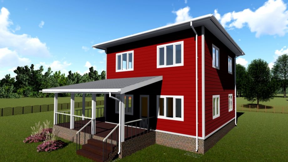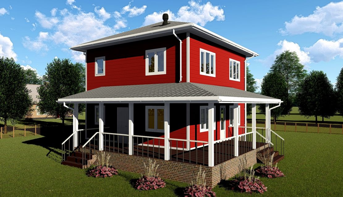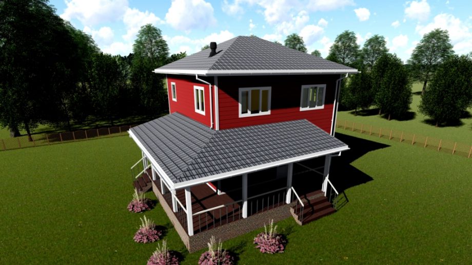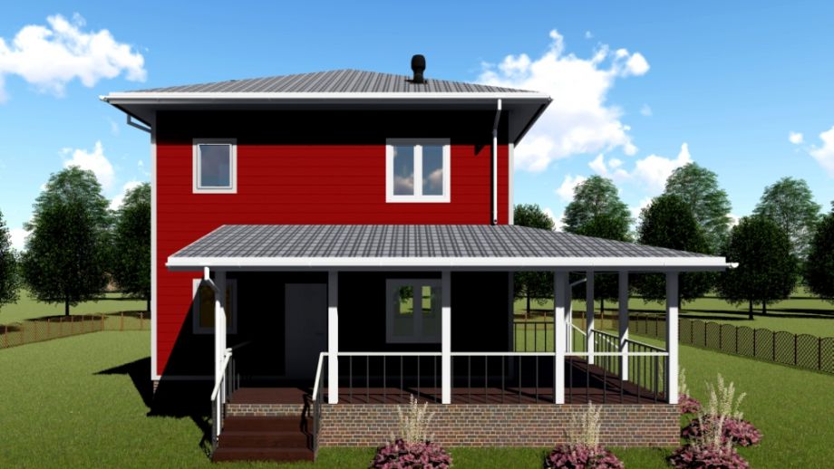 Фасад дома из скандинавской доски с поднятым ворсом, в заводских условиях окрашенной краской Тиккурила. Монтаж производится согласно финским типовым фасадным решениям.