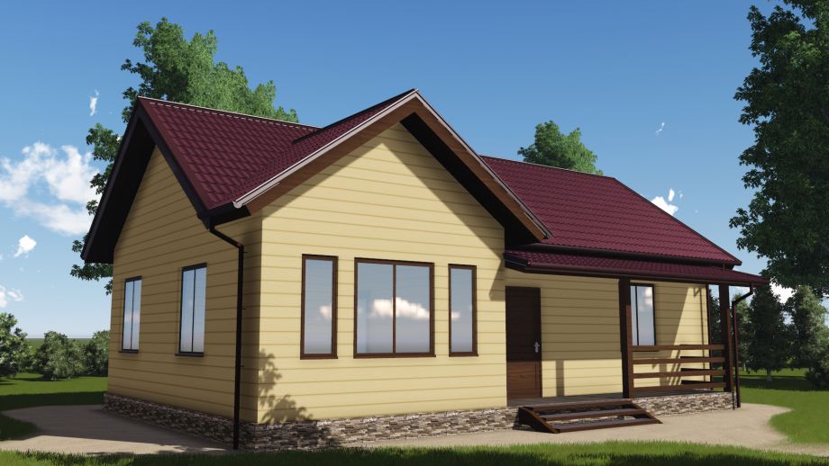 Фасад дома из скандинавской доски с поднятым ворсом, в заводских условиях окрашенной краской Тиккурила. Монтаж производится согласно финским типовым фасадным решениям.